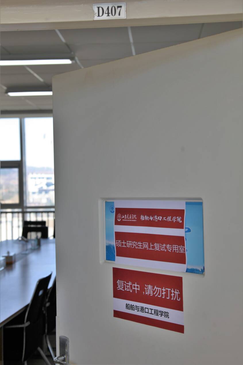 像这样的“圆梦小屋”,现在已经成为山东交通学院各学院的“标配”。考虑到当前学生考研复试的实际需求,几乎每个学院都将各自的会议室、教研室等打造成了类似的“圆梦小屋”,并集中配备了电脑、手机支架、三脚架等线上面试常用工具,为学生们考研“云”复试助力护航。