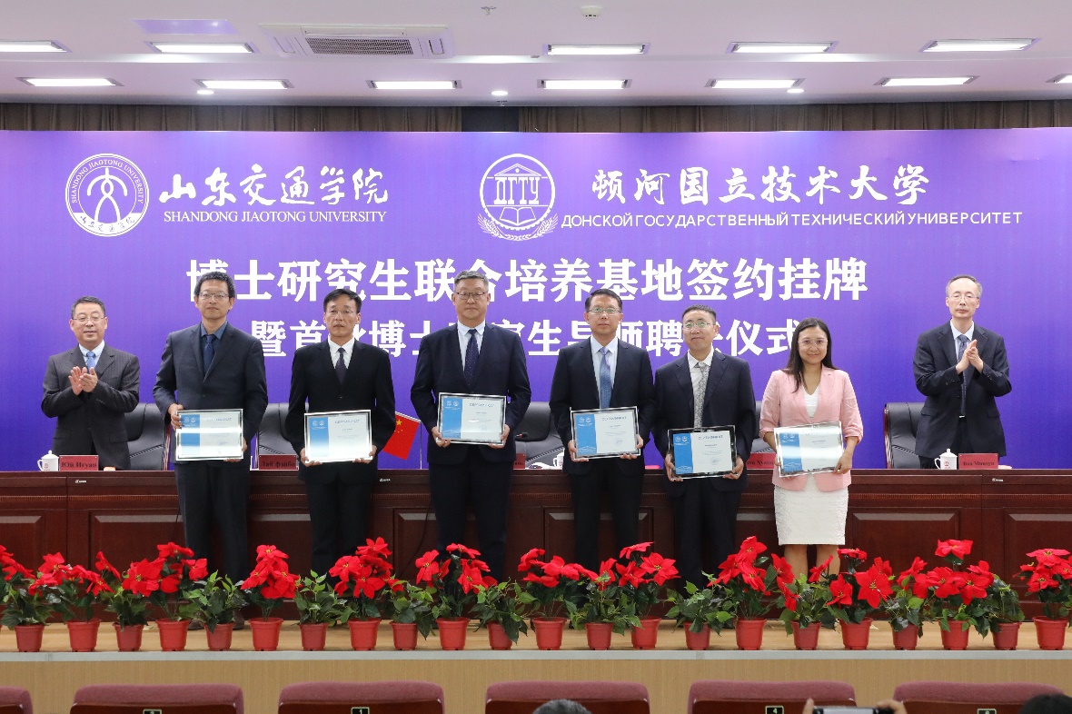 6月8日下午,山东交通学院顿河学院博士联合培养基地签约、挂牌仪式暨首批博士生导师聘任仪式在山东交通学院长清校区举行。山东交通学院院长陈松岩与顿河国立技术大学校长梅什西·别萨里昂·乔霍耶维奇出席仪式并代表双方签署合作协议。