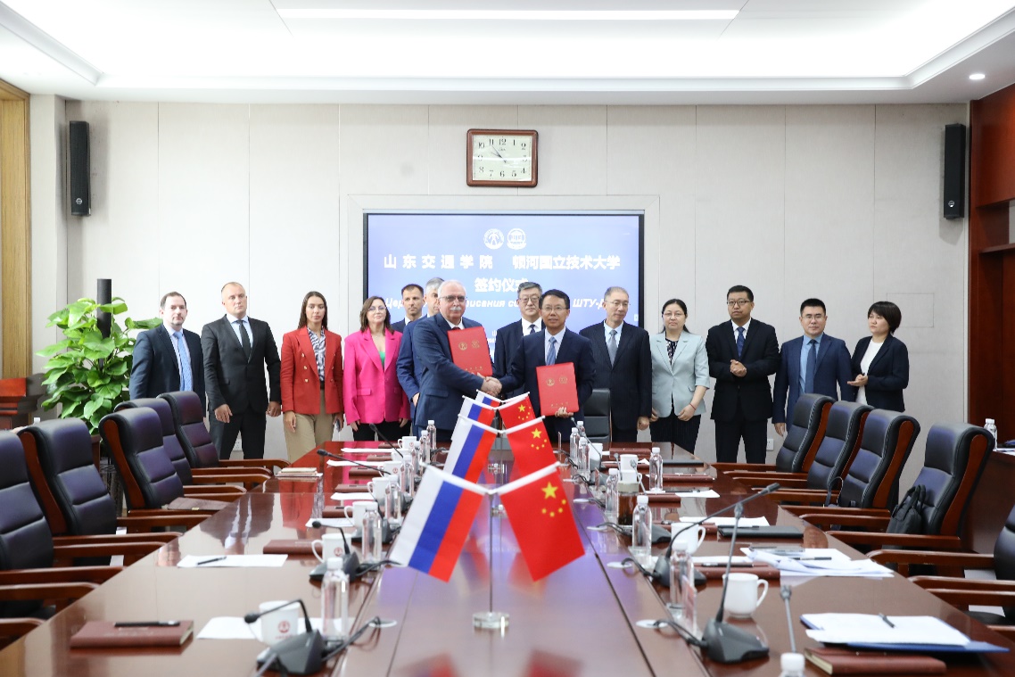 9月26日,山东交通学院与顿河国立技术大学签署共同推进中俄双语国际传播能力战略合作协议,顿河畔罗斯托夫市市长阿列克谢·洛格维年科,顿河畔罗斯托夫市访问团、济南市人民政府外事办公室及山东交通学院相关负责人出席签约仪式,共同见证合作协议签署。