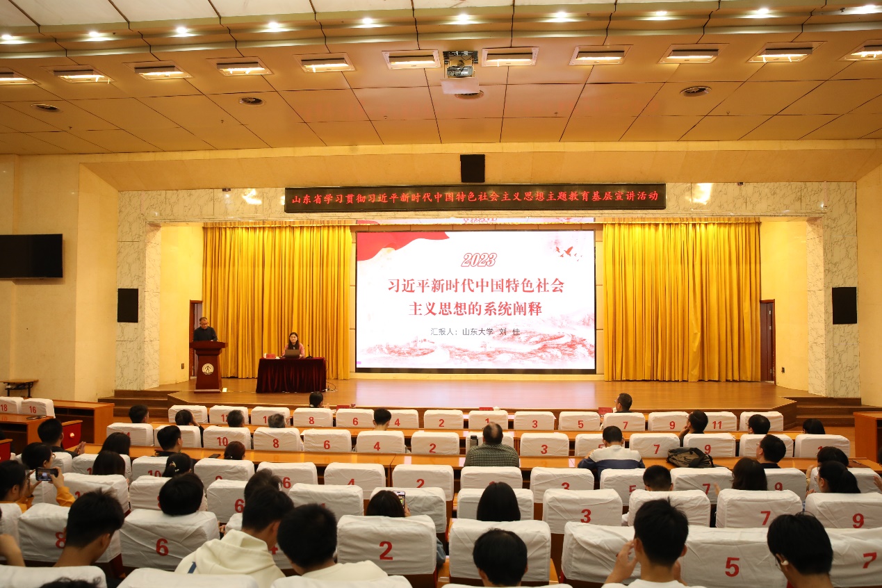 刘佳从“习近平新时代中国特色社会主义思想总体概述”“习近平新时代中国特色社会主义思想的世界观和方法论”“习近平新时代中国特色社会主义思想在齐鲁大地的生动实践”三个部分,系统阐释了习近平新时代中国特色社会主义思想的总体概述、思想内容、基本方略、现实意义等。宣讲视野开阔、思想深邃、内容丰富,广大师生干部获益匪浅。