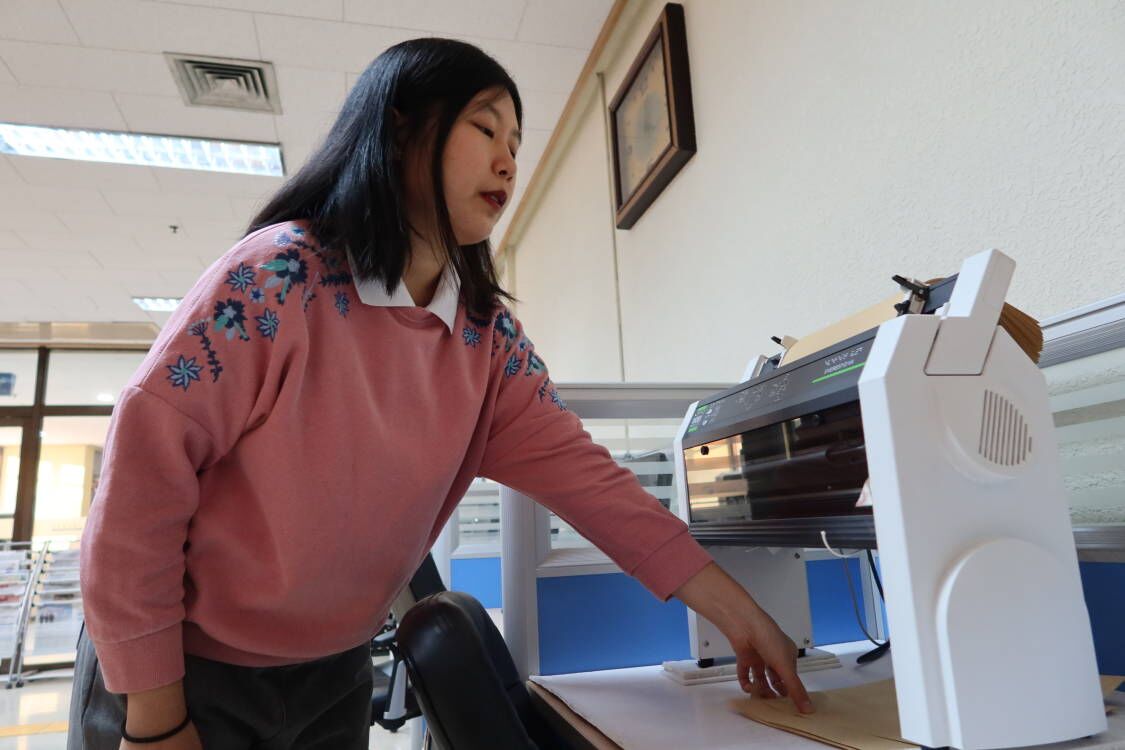 在阅览室的桌面上,放置着刚刚打印好的一本《音响理论与实践》。牛皮纸上,凸起的一串串圆点汇集成了文字。石亚瑄静静坐在桌前,手指缓慢地划过纸面,每一张她都需要这样仔细地校对页码和正文再装订,确保盲人读者能够顺畅使用。之所以如此认真,是因为在她看来,每一本书都属于一个热爱学习、渴求知识的人,都是值得尊敬的个体。