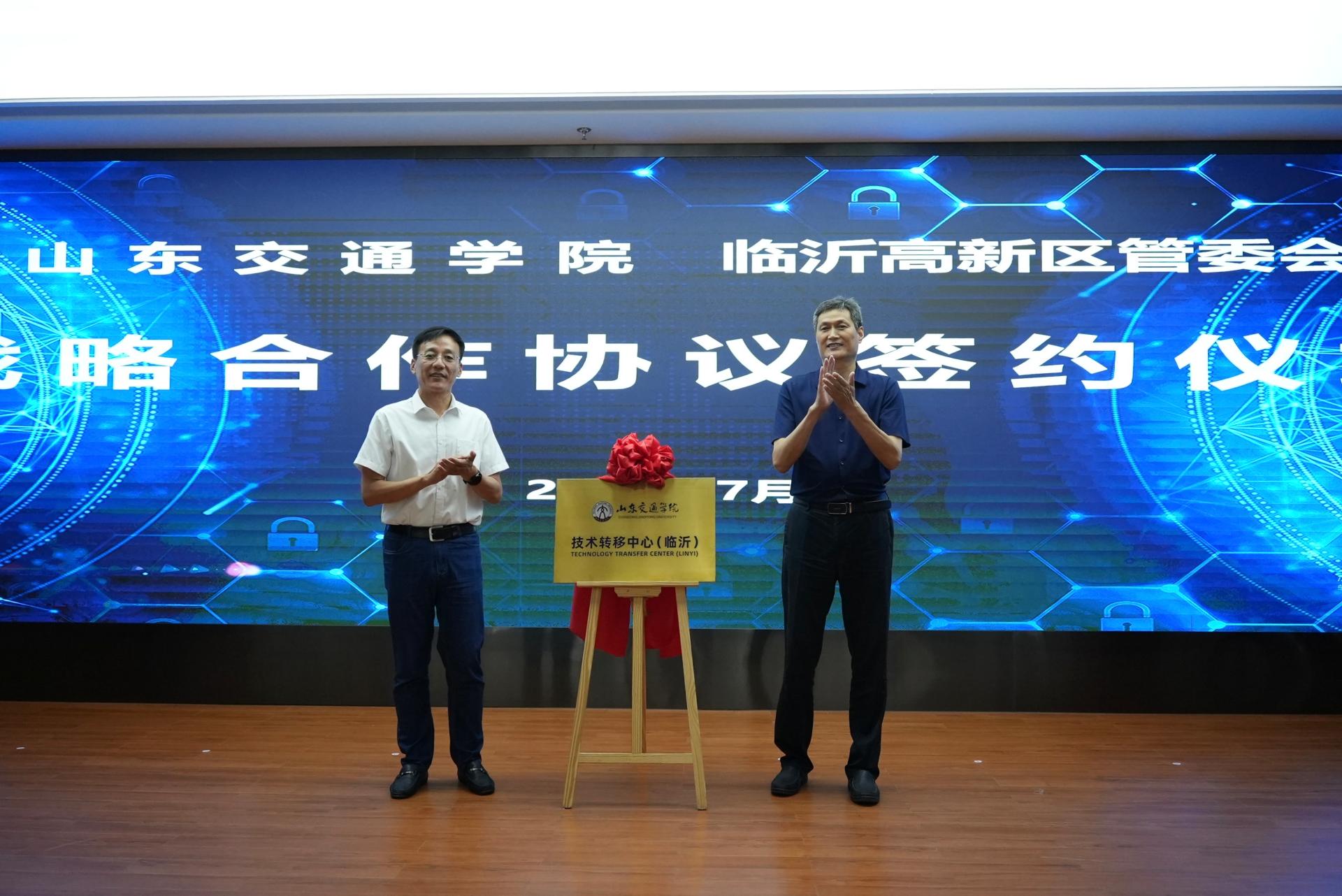 来逢波、王家兴共同为“山东交通学院技术转移中心(临沂)”揭牌。学校与临沂高新区签订战略合作协议;学校相关科研团队分别与临沂高新人才教育发展集团、路亚科消防车辆制造有限公司、山东铁马特种车辆制造有限公司签订合作协议。