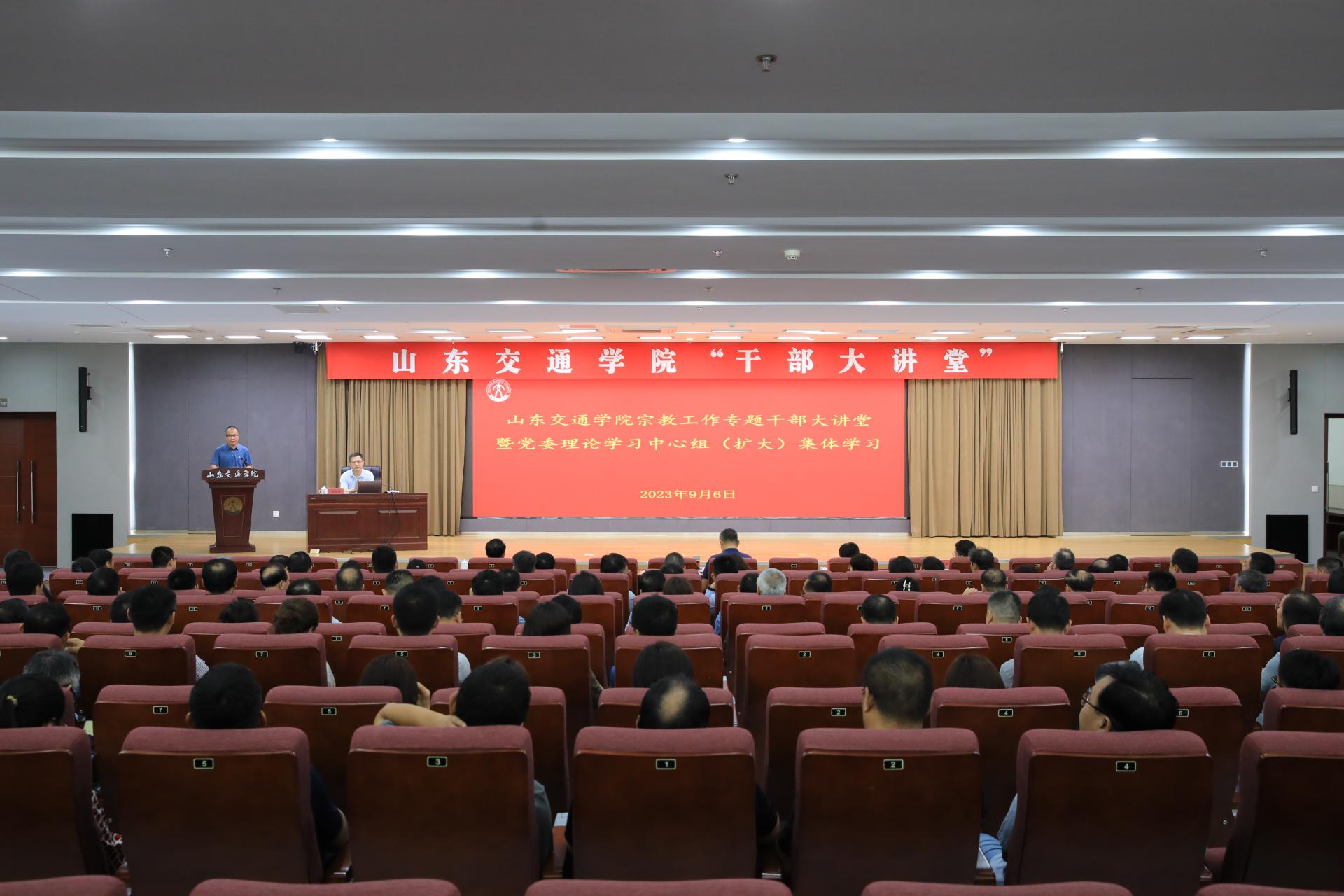 为进一步提升干部宗教工作的理论水平和业务能力,9月6日,学校党委在长清校区明德楼101报告厅举办宗教工作专题干部大讲堂暨党委理论学习中心组(扩大)集体学习。山东省社会主义学院中华文化教研部主任、省政协民族和宗教委员会特聘专家冯永昌应邀作专题报告。学校党委领导班子成员参加会议。会议由党委副书记李贞涛主持。