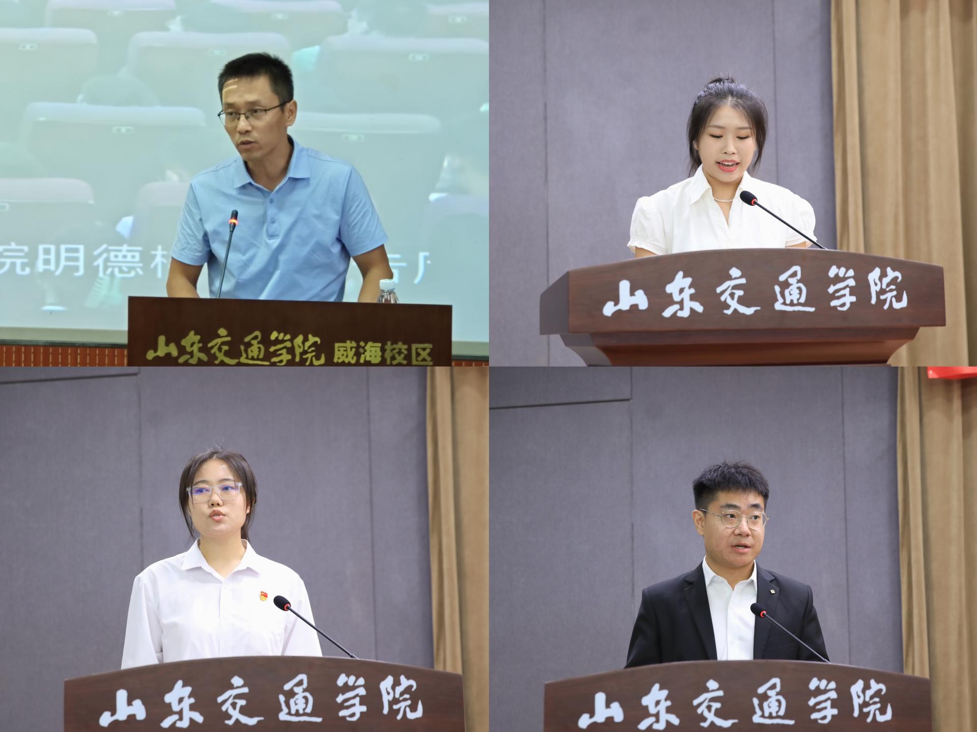 导师代表、船舶与港口工程学院副教授孟君晟发言,希望同学们明确目标、扎实学识,做一个有创新思维的人;诚实守信、提升境界,做一个厚德载物的人;强身健体、修身养性,做一个身心健康的人。新生代表、研机械信电231班研究生张永硕发言,呼吁同学们坚定信念、明确目标、勇于实践,不断地在科研生涯中勇攀高峰。在校生代表、研究生会主席刘姝彤发言,希望同学们不惧未来、不念过往,肩并肩向前迎接新的挑战。校友代表、省级优秀研究生毕业生高珅琦发言,勉励新同学们与学校一起努力,为助力推动学校建设发展而奋斗。