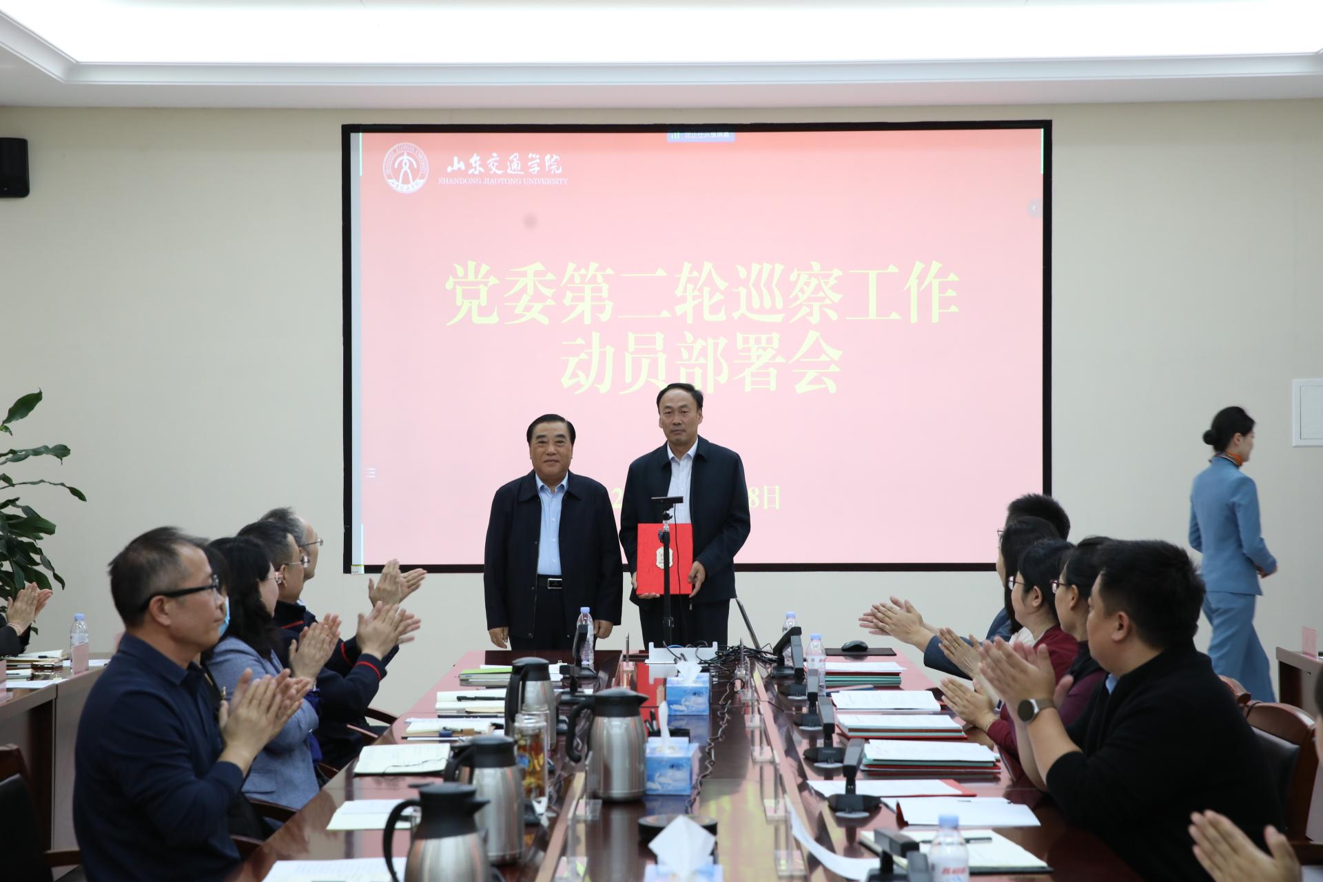 刘世杰宣读了《中共山东交通学院委员会第二轮校内巡察工作方案》,宣布了第二轮巡察组组长授权任职及任务分工决定。