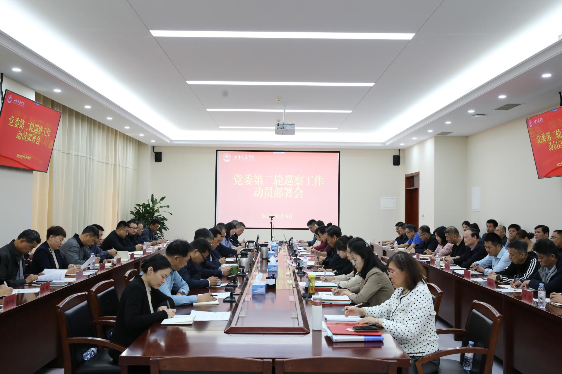 10月18日上午,学校在长清校区明德楼301会议室召开党委第二轮巡察工作动员部署会。学校党委书记、党委巡察工作领导小组组长王焕斌,党委副书记、党委巡察工作领导小组副组长李贞涛,党委委员、纪委书记、监察专员、党委巡察工作领导小组副组长刘世杰,党委委员、党委宣传部部长、党委巡察工作领导小组成员周颜玲出席会议。会议由李贞涛主持。