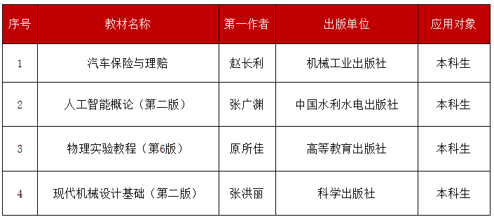 “十四五”以来,学校坚持党对教材工作的全面领导,持续加强教材建设,开展校级教材编写出版规划立项工作和校级教材评优工作,有计划地进行高水平教材培育,并评选一批优秀教材,调动我校教师编写出版教材的积极性。下一步,学校将充分发挥一流教材的示范引领作用和教书育人功能,努力打造更多培根铸魂、启智增慧的优质教材,提高人才培养质量。