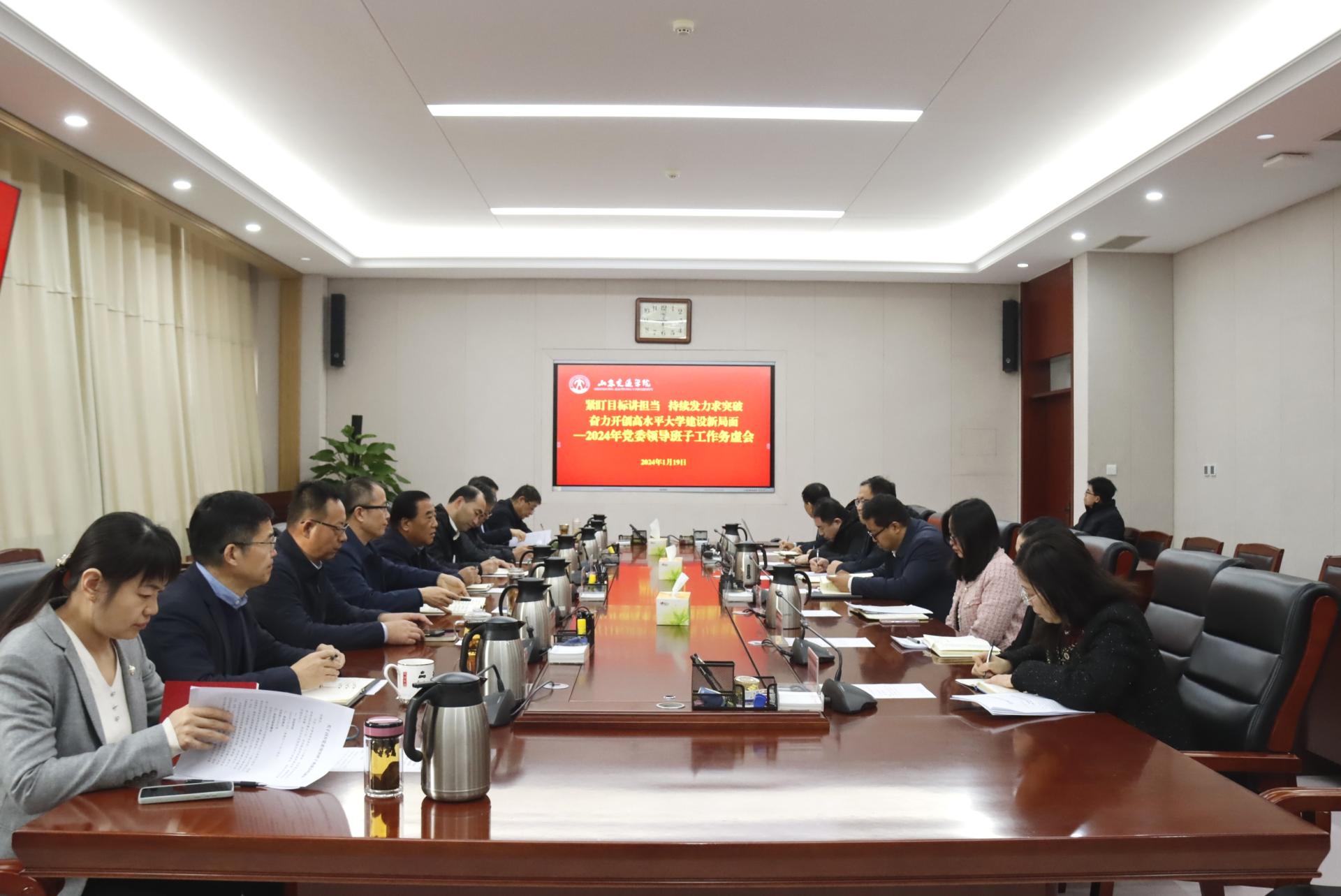 1月19日,学校在长清校区明德楼303会议室召开“紧盯目标讲担当、接续发力求突破,奋力开创高水平大学建设新局面——2024年党委领导班子工作务虚会”。学校党委领导班子成员出席。会议由党委书记王焕斌主持。