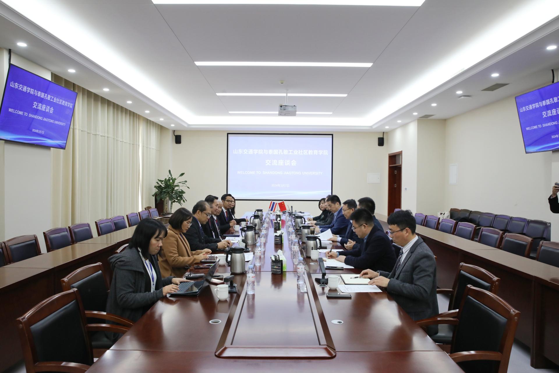 3月7日至8日,泰国孔敬工业社区教育学院校长兰邦·潘佩一行8人访问我校。学校党委委员、副院长姜华平在长清校区明德楼301会议室会见代表团。