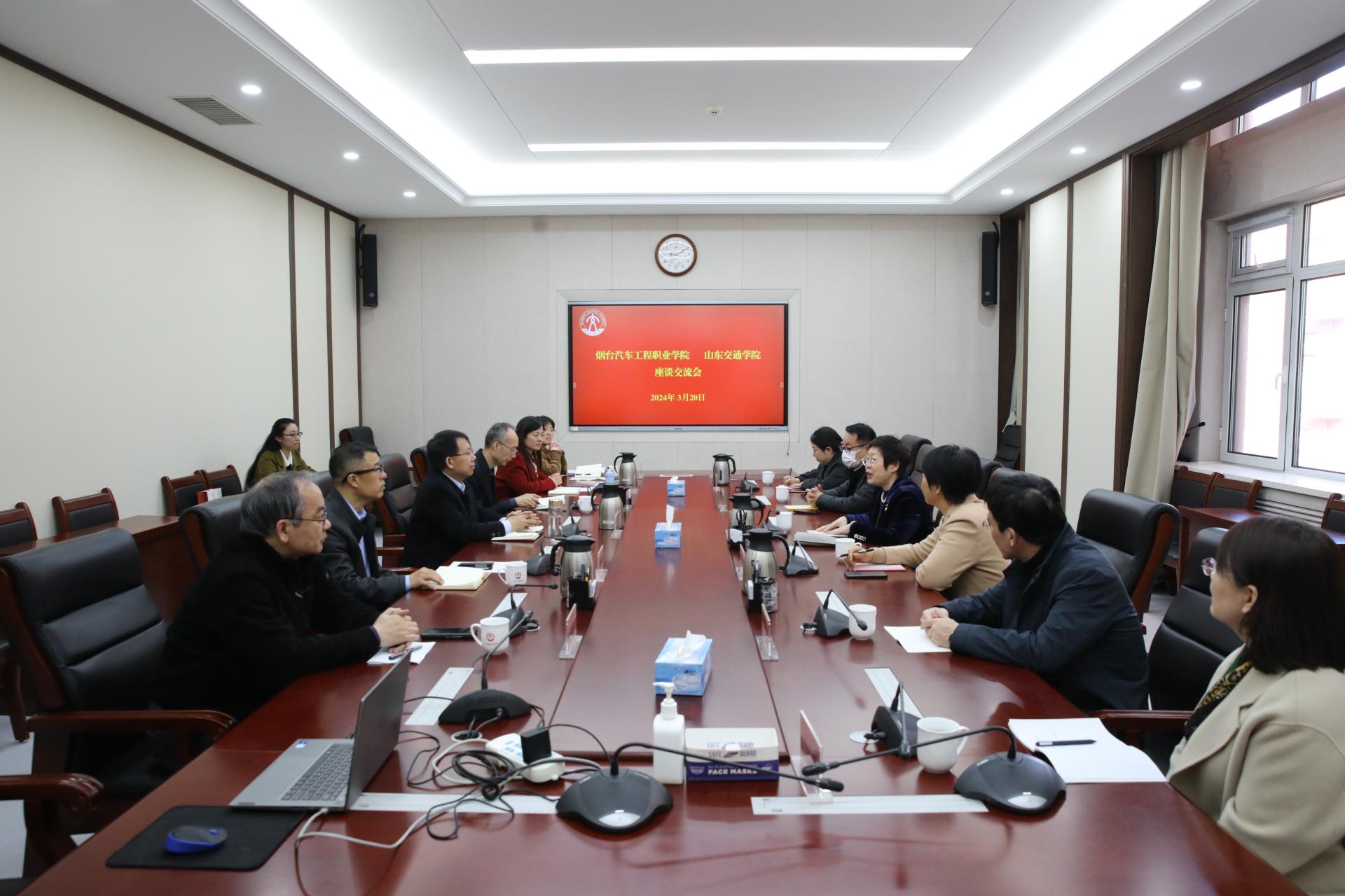 3月20日上午,烟台汽车工程职业学院党委副书记曲耀春,党委委员、副院长付双美一行来校调研交流。座谈会在长清校区明德楼302会议室召开。学校党委委员、副院长姜华平出席并主持会议。