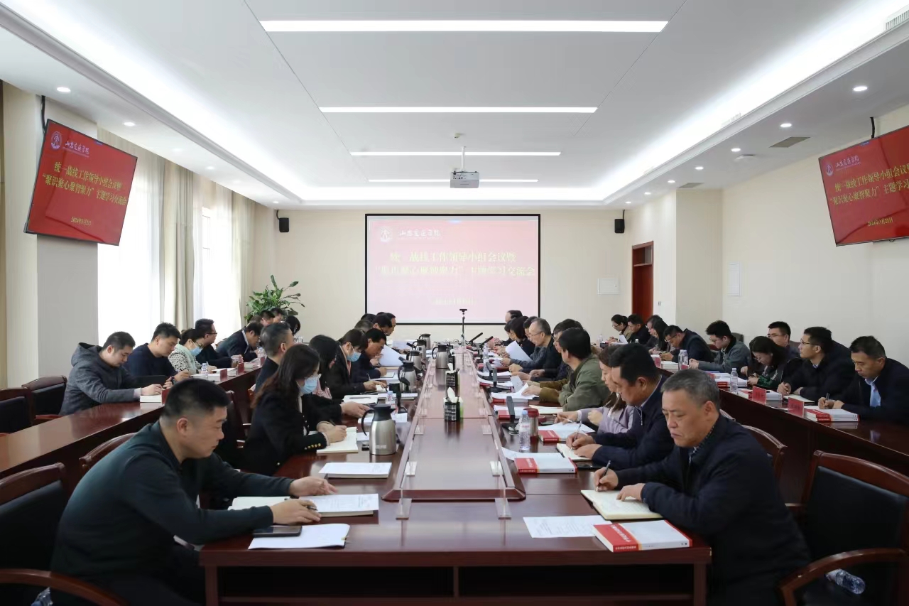 3月21日,学校党委在长清校区明德楼301会议室召开统一战线工作领导小组会议暨“聚识聚心聚智聚力”主题学习交流会。学校党委书记王焕斌,党委副书记李贞涛,党委委员、党委宣传部部长周颜玲出席会议。会议由李贞涛主持。