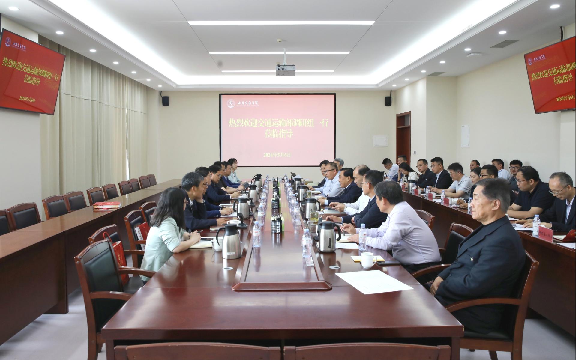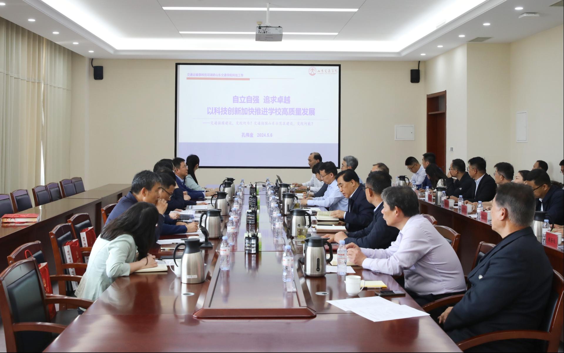 5月6日,交通运输部科技司司长徐文强,山东省交通运输厅党组成员、副厅长高洪岩一行来校调研指导。学校党委领导班子成员王焕斌、孔伟金、李贞涛、曲同军、姜华平、王保群、周颜玲参加调研座谈。