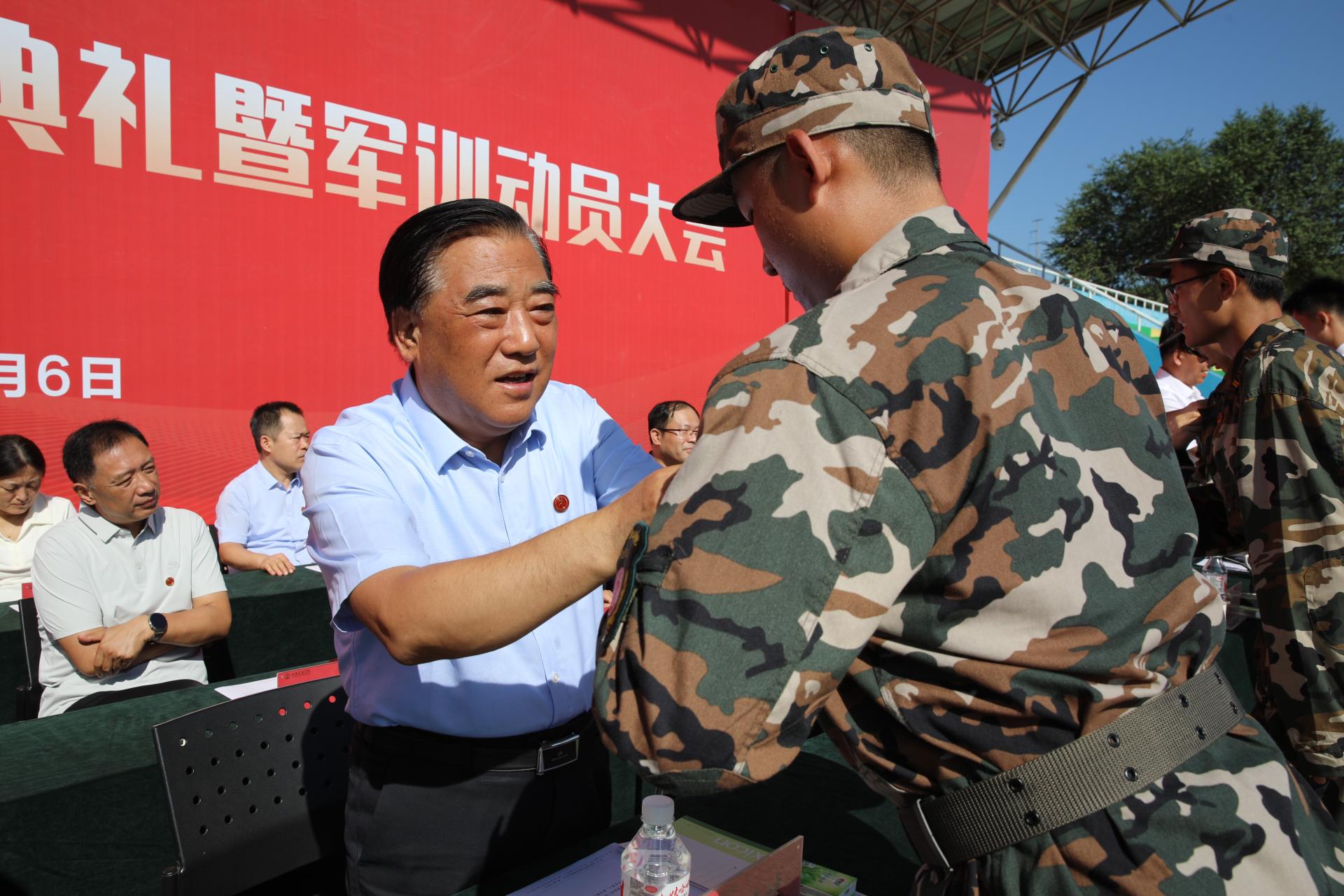 学校领导为2024级新生代表佩戴校徽。