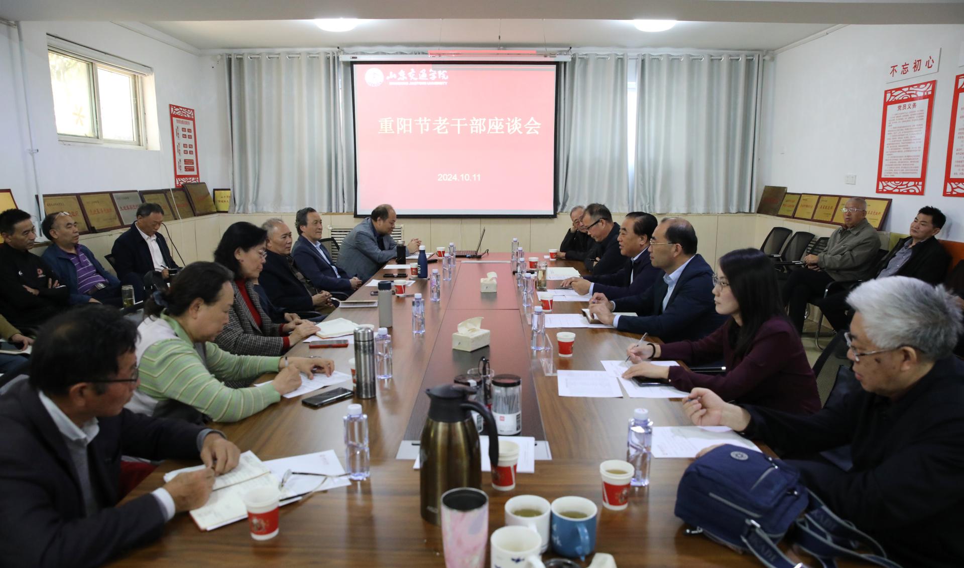 10月11日上午,学校在无影山校区离退休职工活动中心召开2024年重阳节座谈会。学校党委书记王焕斌,党委副书记、院长孔伟金,党委副书记李贞涛,党委委员、党委组织部部长王兴盈出席。会议由李贞涛主持。