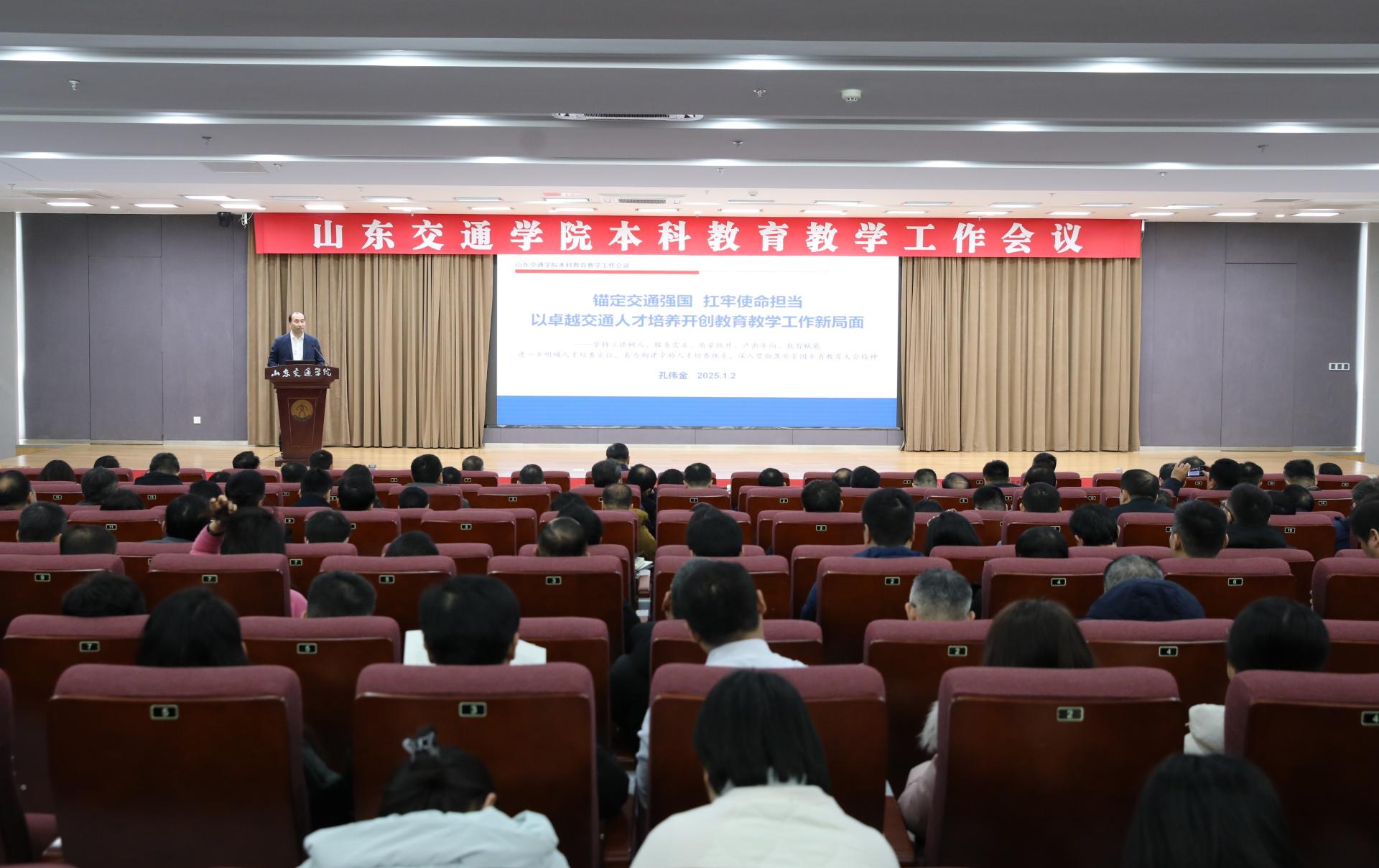 为贯彻落实全国、全省教育大会精神,加快实施卓越交通应用型人才培养,1月2日,学校召开本科教育教学工作会议。山东省教育厅高等教育处处长曾宪文;学校党委领导班子成员王伟、孔伟金、李贞涛、刘世杰、姜华平、王保群、李秀领、徐静、王兴盈出席本次会议。会议由党委委员、副院长姜华平主持。