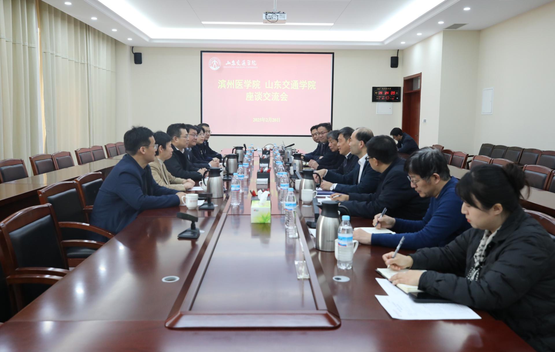 滨州医学院党委(院长)办公室、科学技术处、研究生处、合作发展处负责人,我校党委办公室(学校办公室)、发展规划与学科建设处、科研处、研究生工作处、基建处、产教融合办公室负责人参加座谈交流。