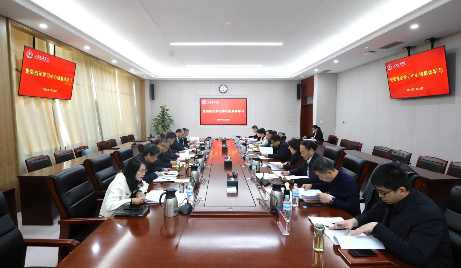 2月26日,学校党委理论学习中心组在长清校区明德楼303会议室进行集体学习,学习领会习近平文化思想、习近平总书记关于党的建设的重要思想、习近平总书记关于做好新时代党的统一战线工作的重要思想、习近平总书记关于加强党的纪律教育的重要论述,并联系思想和工作实际进行交流讨论。