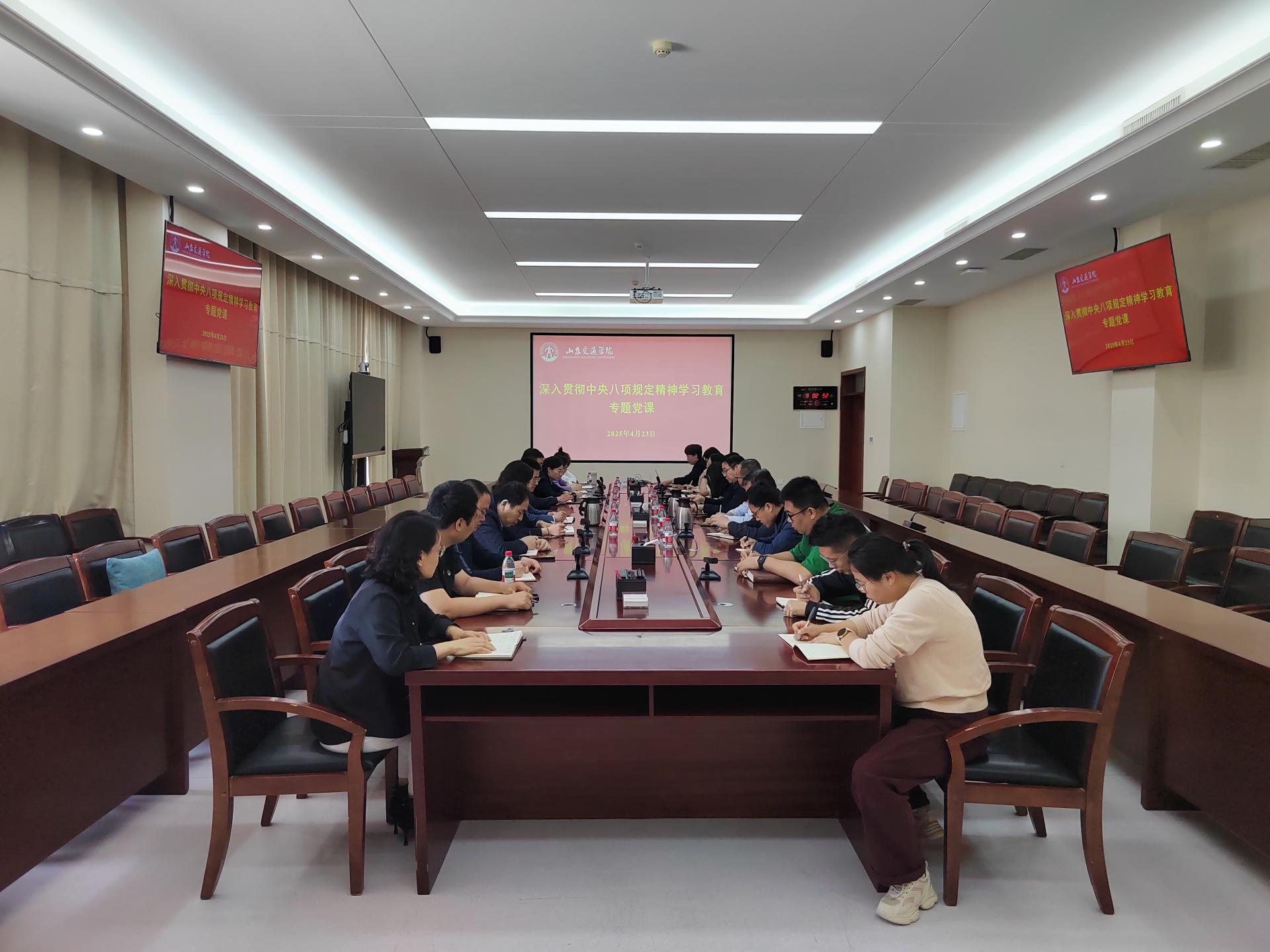 4月23日上午,科研处党支部联合发展规划与学科建设处党支部、教务处党支部、国际合作交流处党支部、产教融合办公室党支部,在明德楼301会议室举办主题党日活动,专题学习中央八项规定精神。学校党委委员、副院长李秀领参加活动。活动由科研处党支部书记黄玉娟主持。