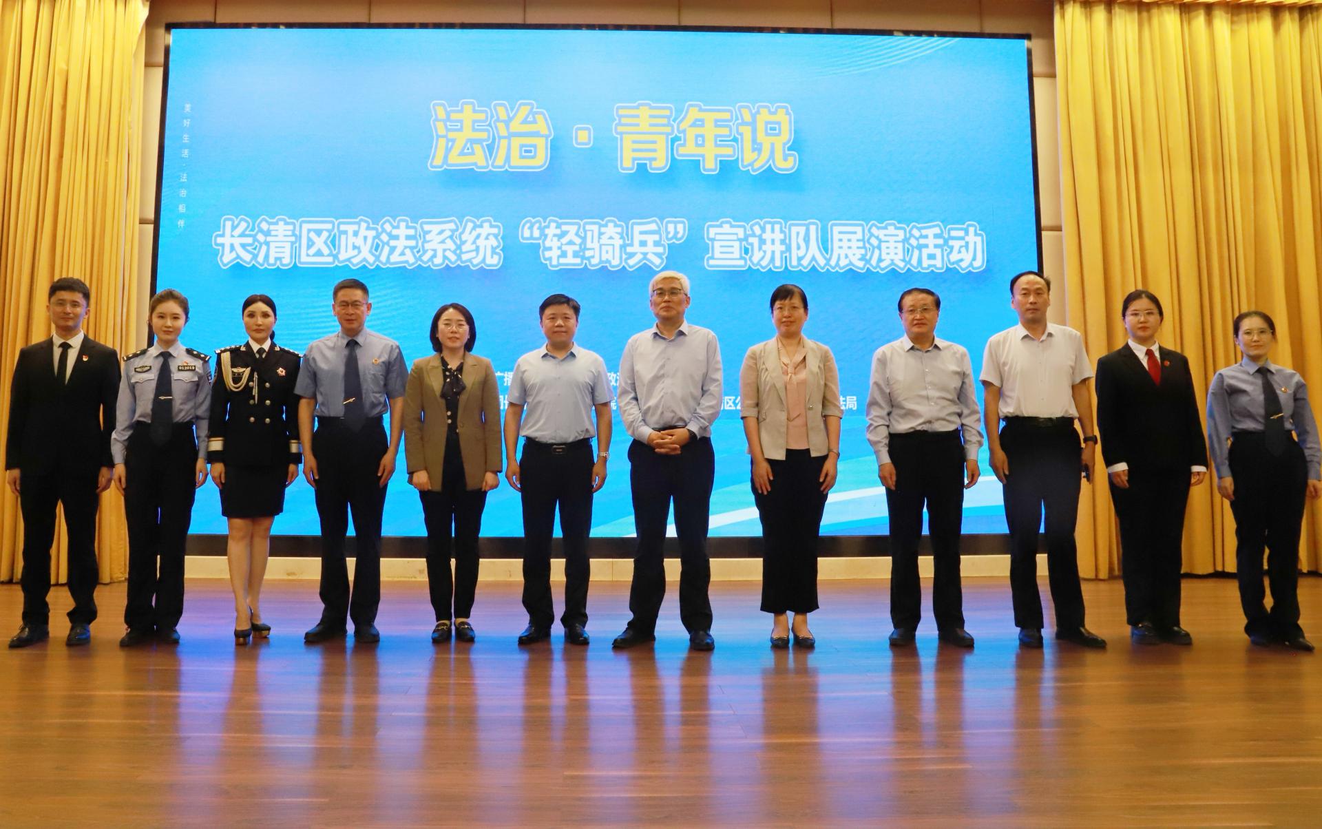 五四青年节来临之际,4月29日下午,学校联合长清区委政法委在长清校区学术报告厅共同举办“法治·青年说”主题宣讲展演活动,长清区政法系统“轻骑兵”宣讲队进校宣讲。团市委副书记石明媛,市委政法委政治部主任刘玉秋,长清区领导白涛、李培振、郝兆林、景科,学校党委委员、党委统战部部长刘庆波出席此次活动。