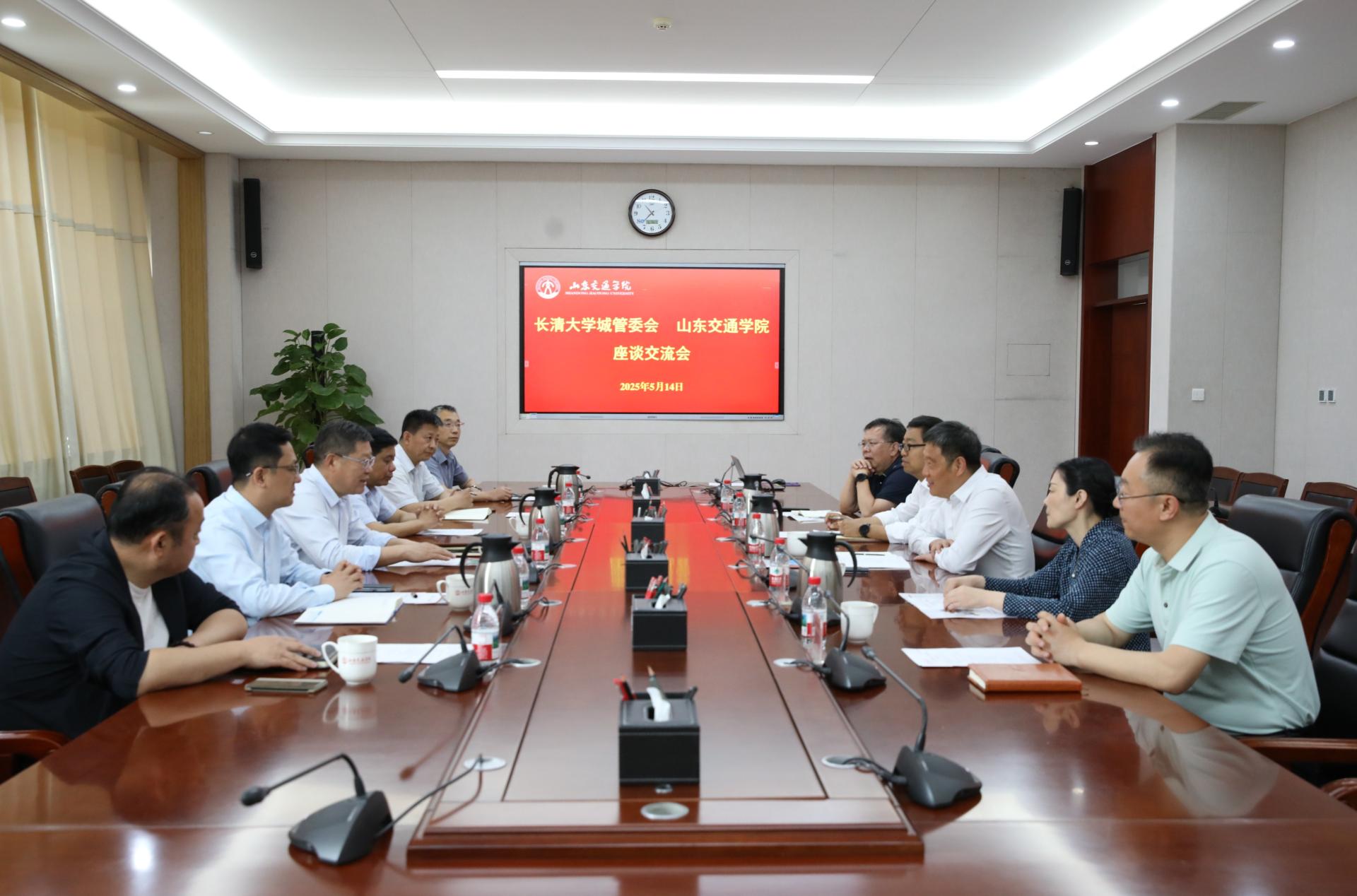 近日,济南长清大学城党工委副书记、管委会主任董泽勇一行来校座谈交流。座谈会在长清校区明德楼303会议室召开。学校党委书记王伟,党委委员、副院长徐静出席。