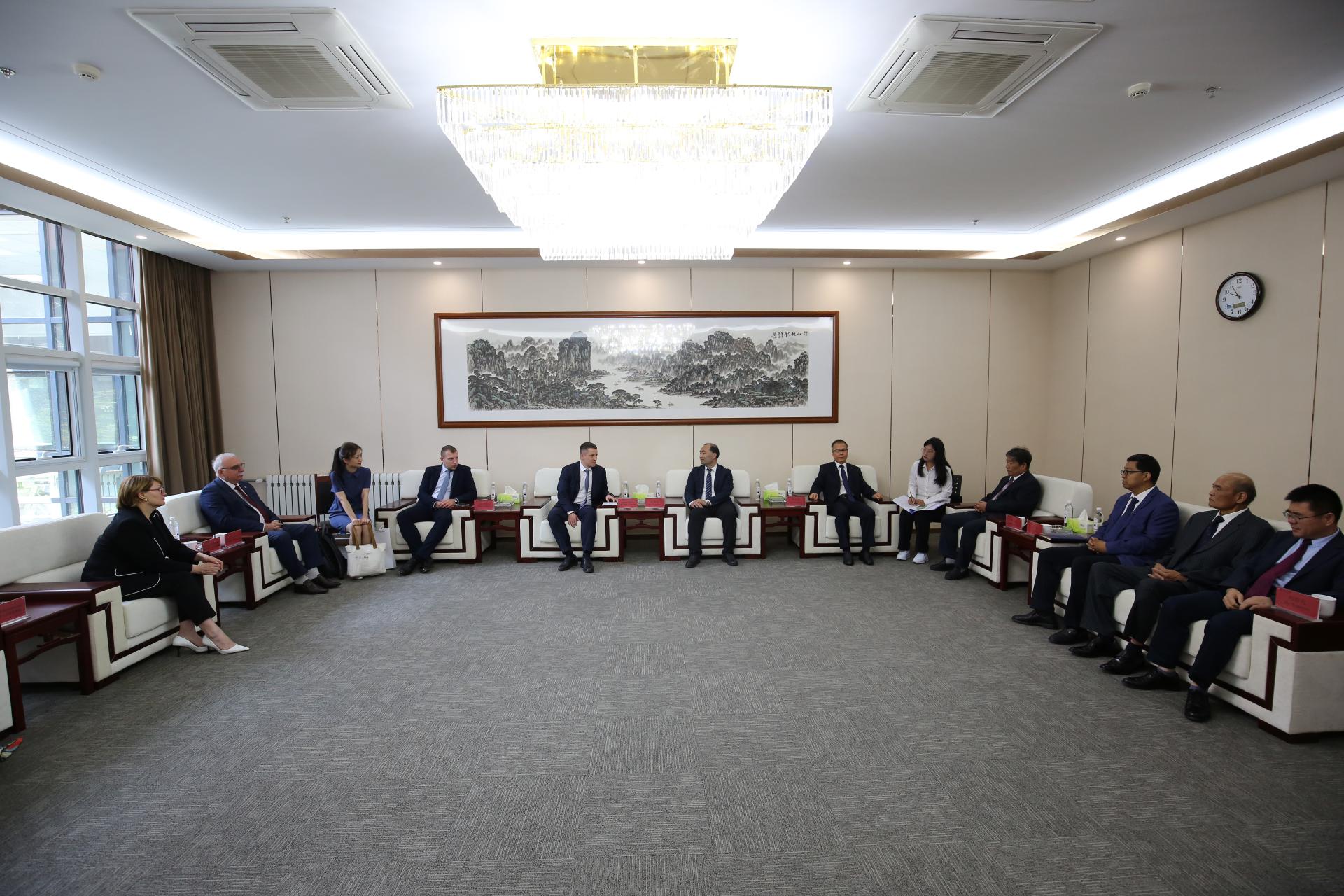 孔伟金对代表团的到访表示热烈欢迎,简要介绍了学校的基本情况和办学特色,回顾了与顿河国立技术大学的教育合作历史,总结了顿河学院在人才培养、科研合作以及服务社会等方面取得的丰硕成果。他希望,在两校友好合作的基础上,进一步推动双方互访交流,携手推动顿河学院高质量发展。同时,在智慧交通、绿色交通和智能建造等前沿领域,加强科技合作,共同构建跨领域、深层次的国际合作新格局,为中俄两国的教育、科技和经济社会发展作出新的更大贡献。