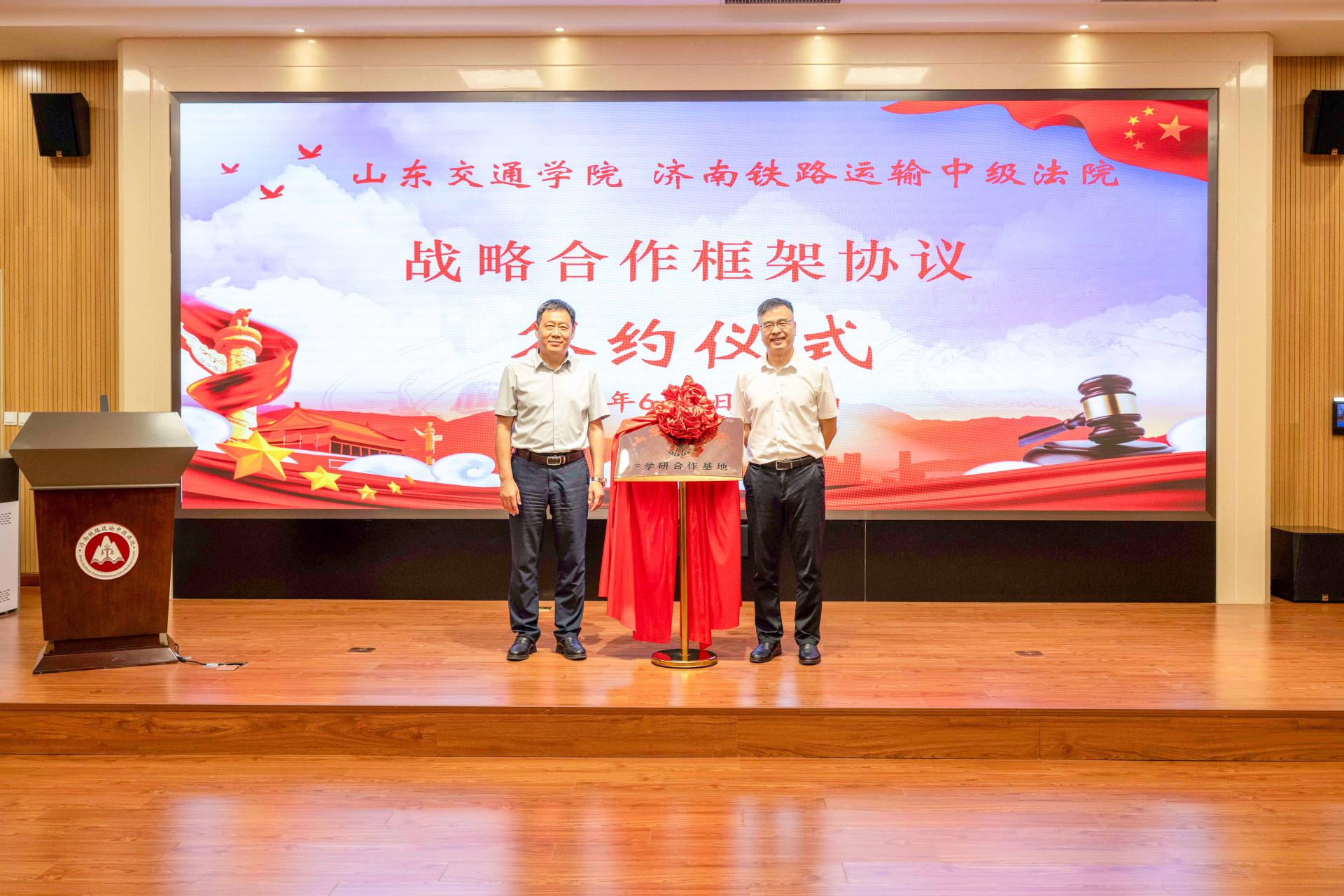 王伟、李军共同为“山东交通学院交通法学院产学研合作基地”揭牌。