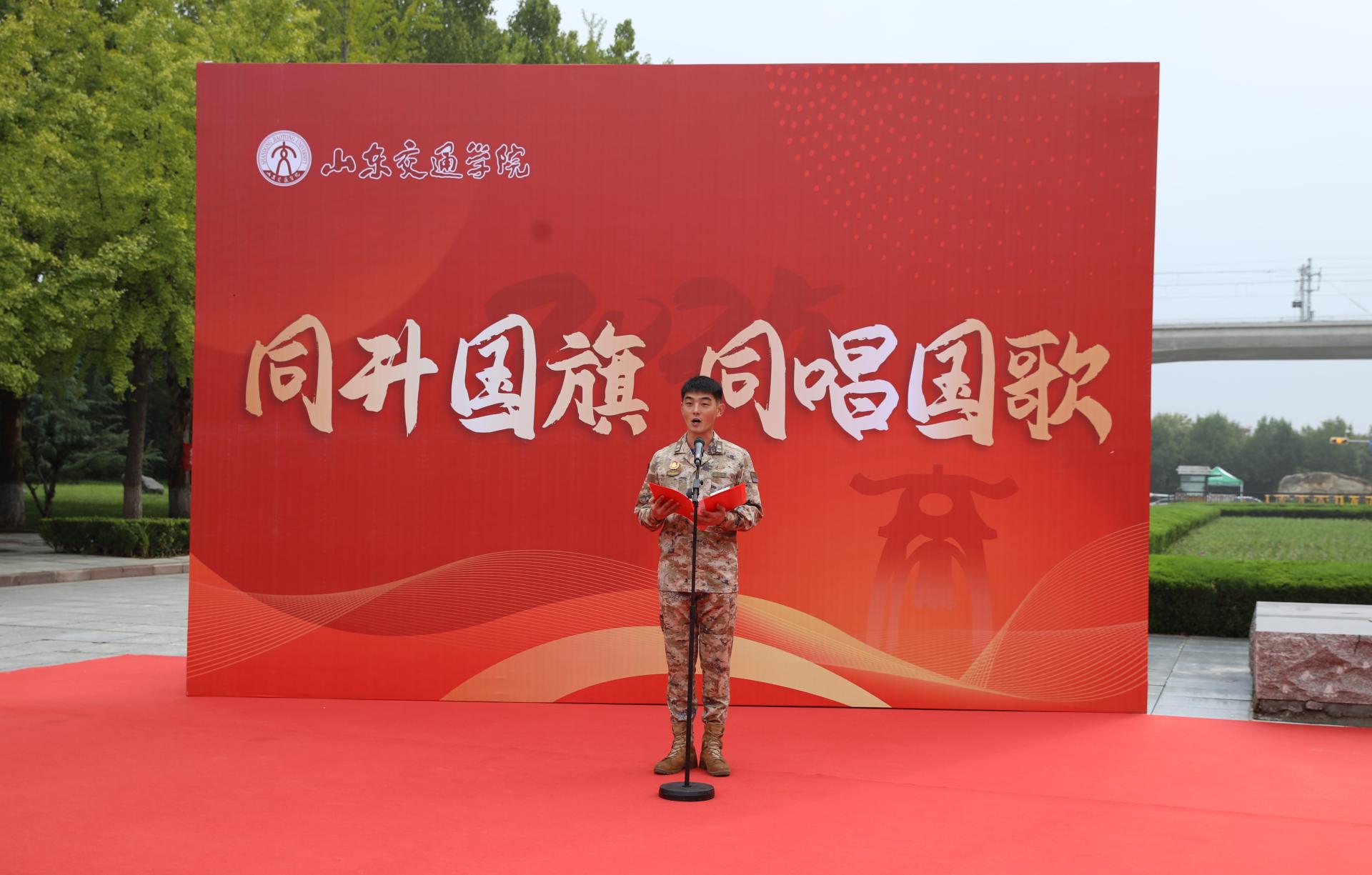9月28日上午,学校在长清校区东门举行“同升国旗,同唱国歌”主题活动。学校党委领导班子成员王伟、李贞涛、王保群、徐静、王兴盈、刘庆波出席活动。