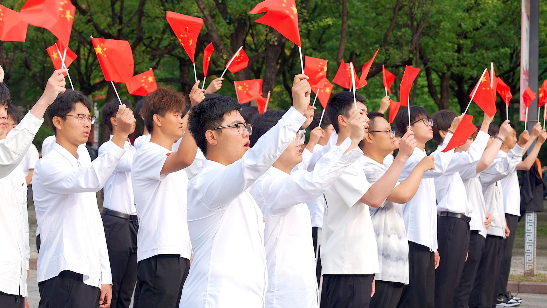 上午8时整,升旗仪式正式开始。国旗护卫队队员迈着整齐划一的步伐,护卫着鲜艳的五星红旗行进至升旗台。在嘹亮的国歌奏唱声中,升旗手振臂扬旗,五星红旗冉冉升起。全体师生齐唱国歌,以最真挚的情感向伟大祖国致以崇高敬意。