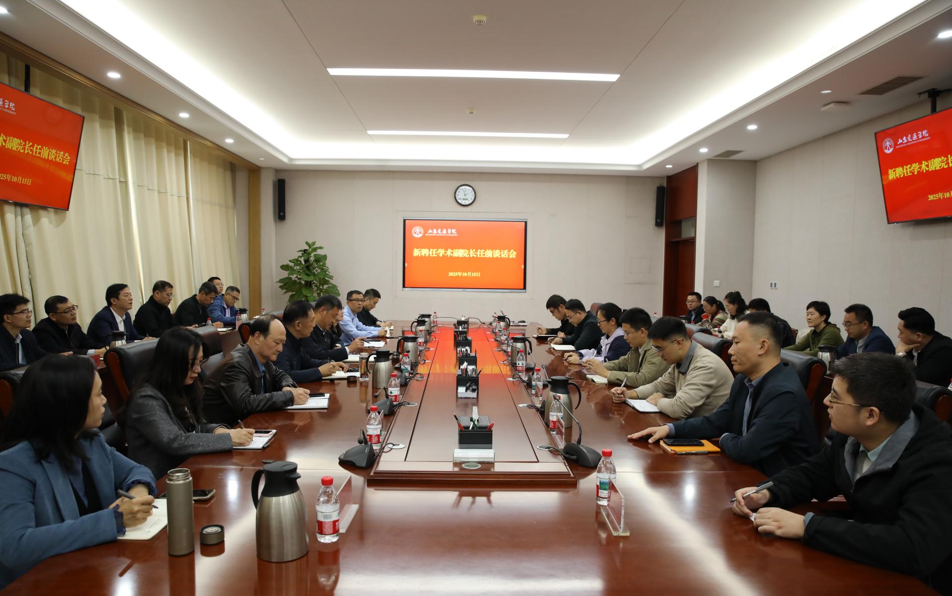 10月15日下午,学校在长清校区明德楼303会议室召开学术副院长任前集体谈话会。学校党委书记王伟,党委委员、党委组织部部长王兴盈出席。会议由王伟主持。
