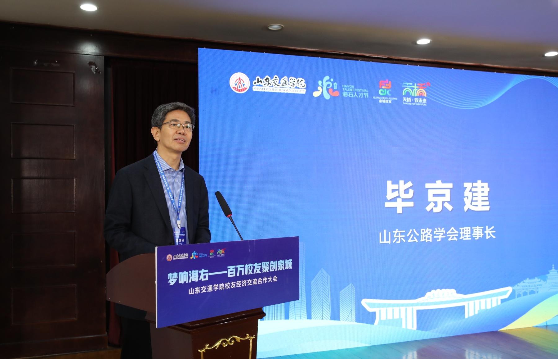 毕京建强调交通行业正迈向高质量发展新阶段,鼓励校友企业把握机遇,在智慧化、绿色化转型中实现自身发展与社会贡献的统一。他表示,山东公路学会将以“校友经济”为纽带,持续发挥桥梁纽带作用,为校友企业在成果评价、技术咨询等方面做好服务,共同为交通强国建设作出更大贡献。