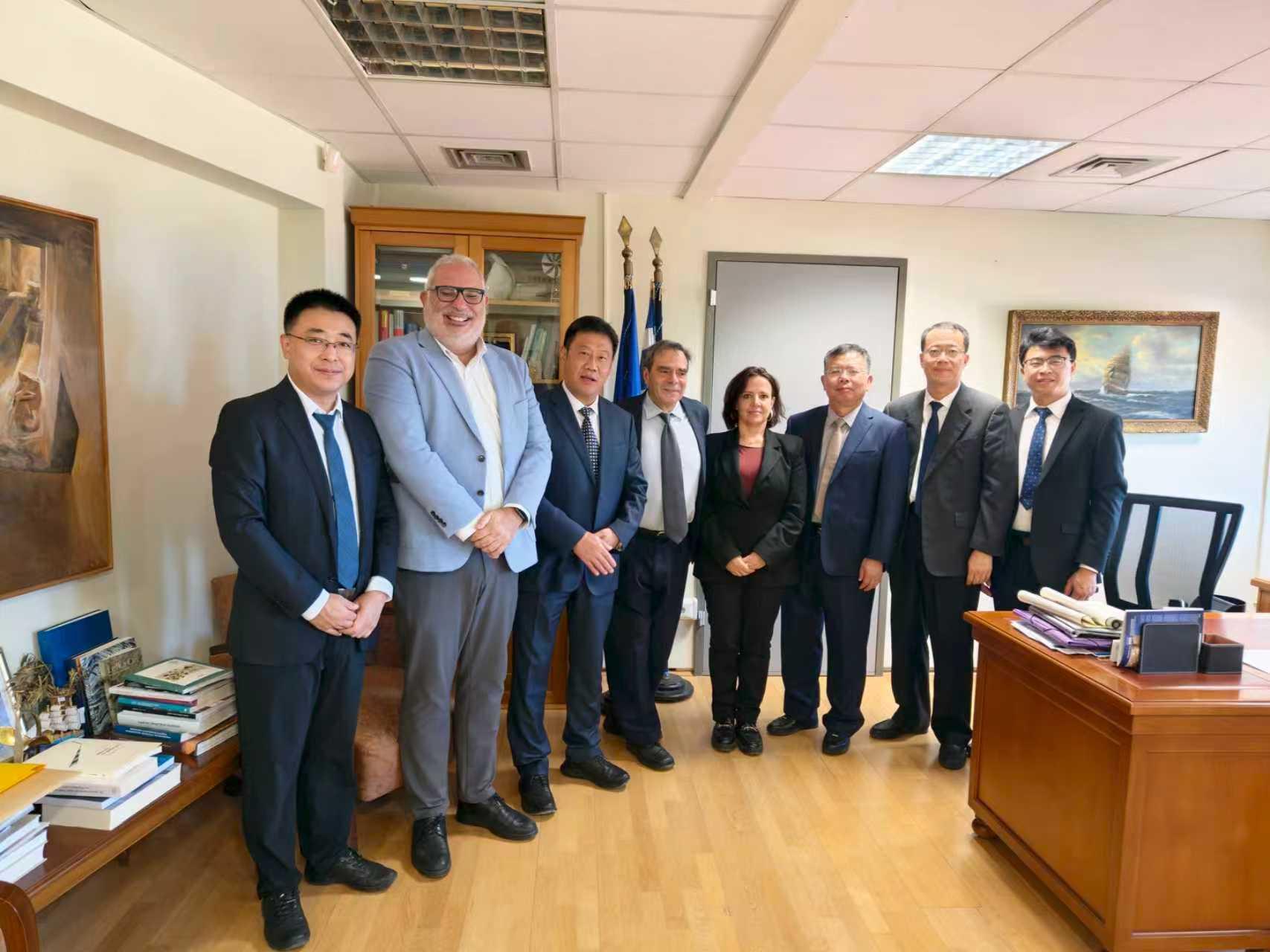 为推进产教融合国际化建设,代表团还到访了中国船级社希腊分社、华洋(希腊)船务有限公司,与希中友协常务副会长、山东省人民友好使者莱夫特瑞斯·贡多斯会面,就推进海洋运输、技术服务、科技创新、大学生海外就业等领域合作进行商谈。