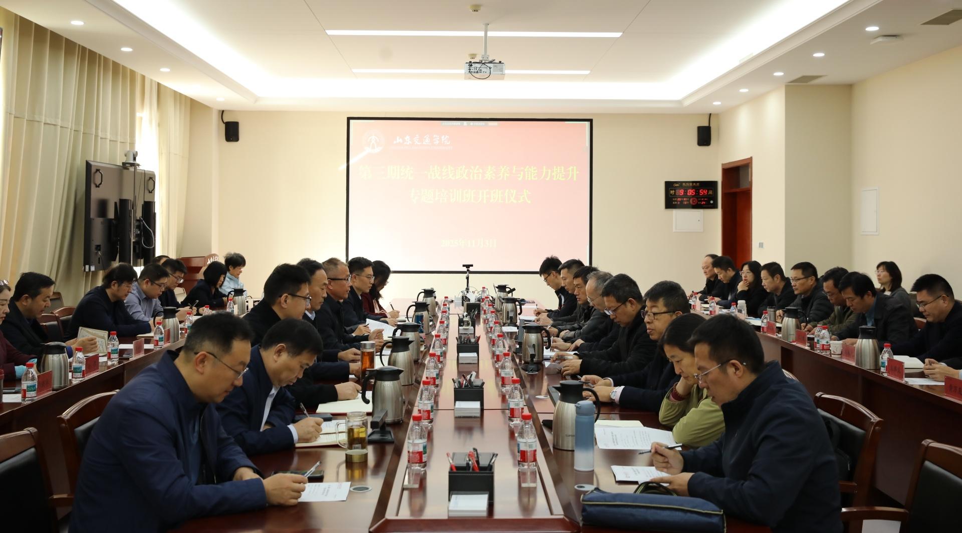 11月3日,学校第三期统一战线政治素养与能力提升专题培训班开班式在长清校区明德楼301会议室举行。省社会主义学院基础理论教研部主任冯永昌教授应邀作专题辅导报告。学校党委副书记李贞涛,党委委员、党委组织部部长王兴盈,党委委员、党委统战部部长刘庆波出席。会议由刘庆波主持。