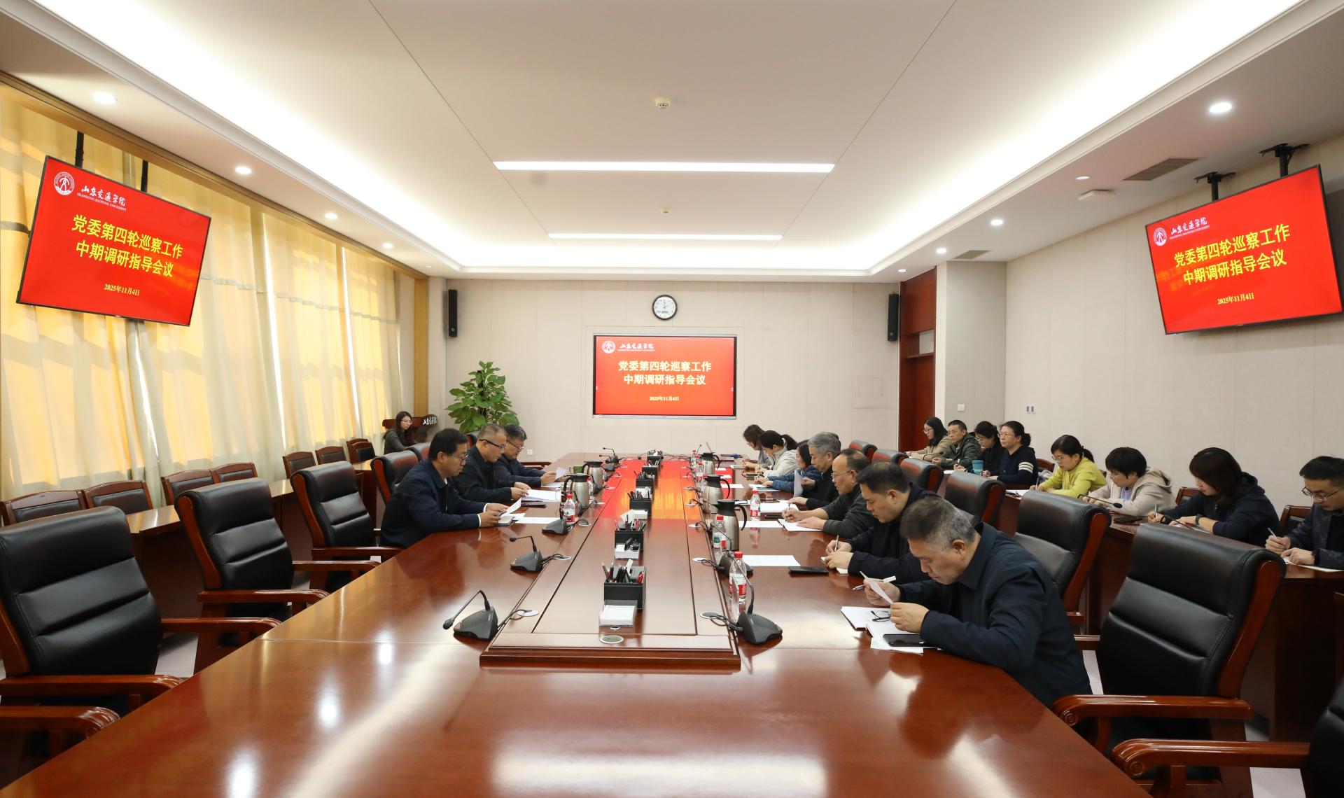 11月4日下午,党委第四轮巡察工作中期调研指导会议在明德楼303会议室召开。学校党委副书记、党委巡察工作领导小组副组长李贞涛出席会议,党委委员、纪委书记、监察专员、党委巡察工作领导小组副组长刘世杰主持会议。