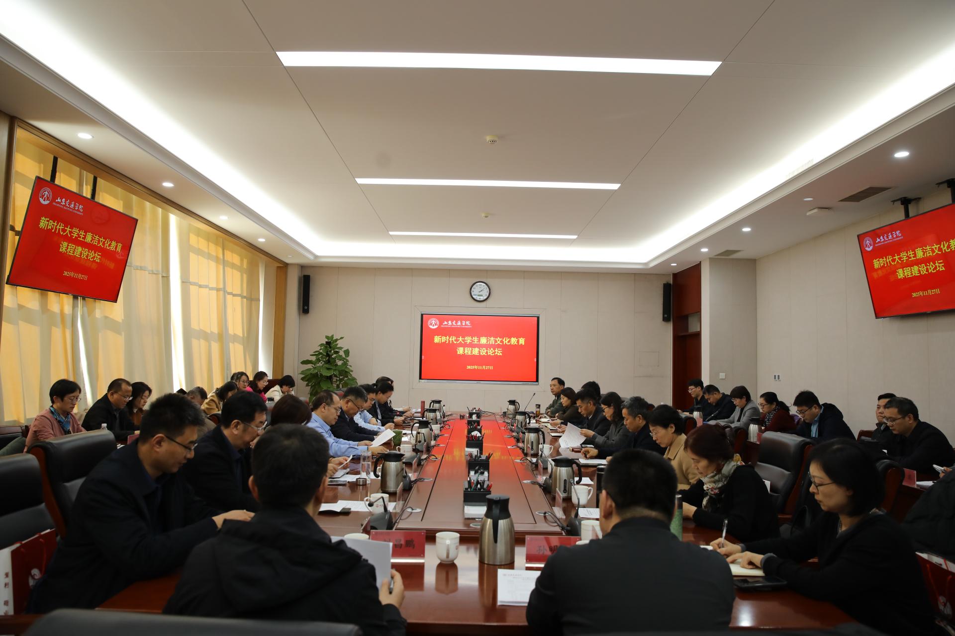 11月27日下午,高校新时代大学生廉洁文化教育论坛在我校举行。省纪委监委、省教育厅、济南长清大学城纪检监察工委、长清区纪委监委以及山东师范大学等13所兄弟院校领导及纪检监察机构相关负责人;学校党委书记王伟,党委委员、纪委书记、监察专员刘世杰出席。活动由刘世杰主持。