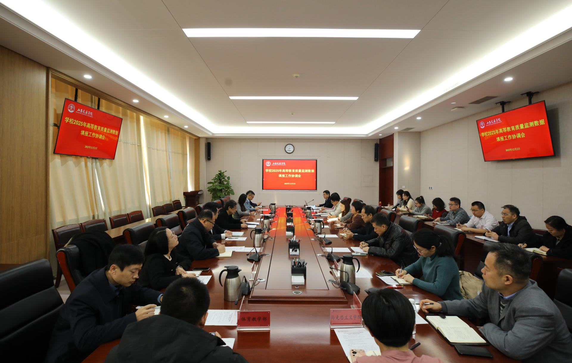 12月2日,学校在长清校区明德楼303会议室召开2025年高等教育质量监测数据填报工作协调会。学校党委委员、副院长王保群出席并主持会议。