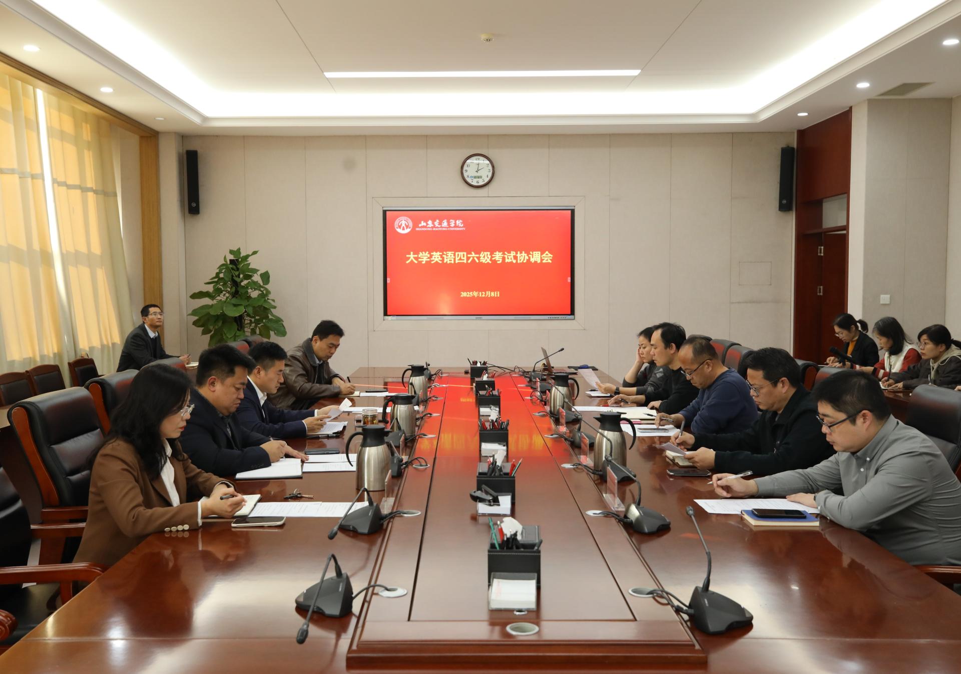 12月8日下午,学校在长清校区明德楼303会议室召开全国大学英语四六级考试协调会。学校党委委员、副院长李秀领出席并主持会议。