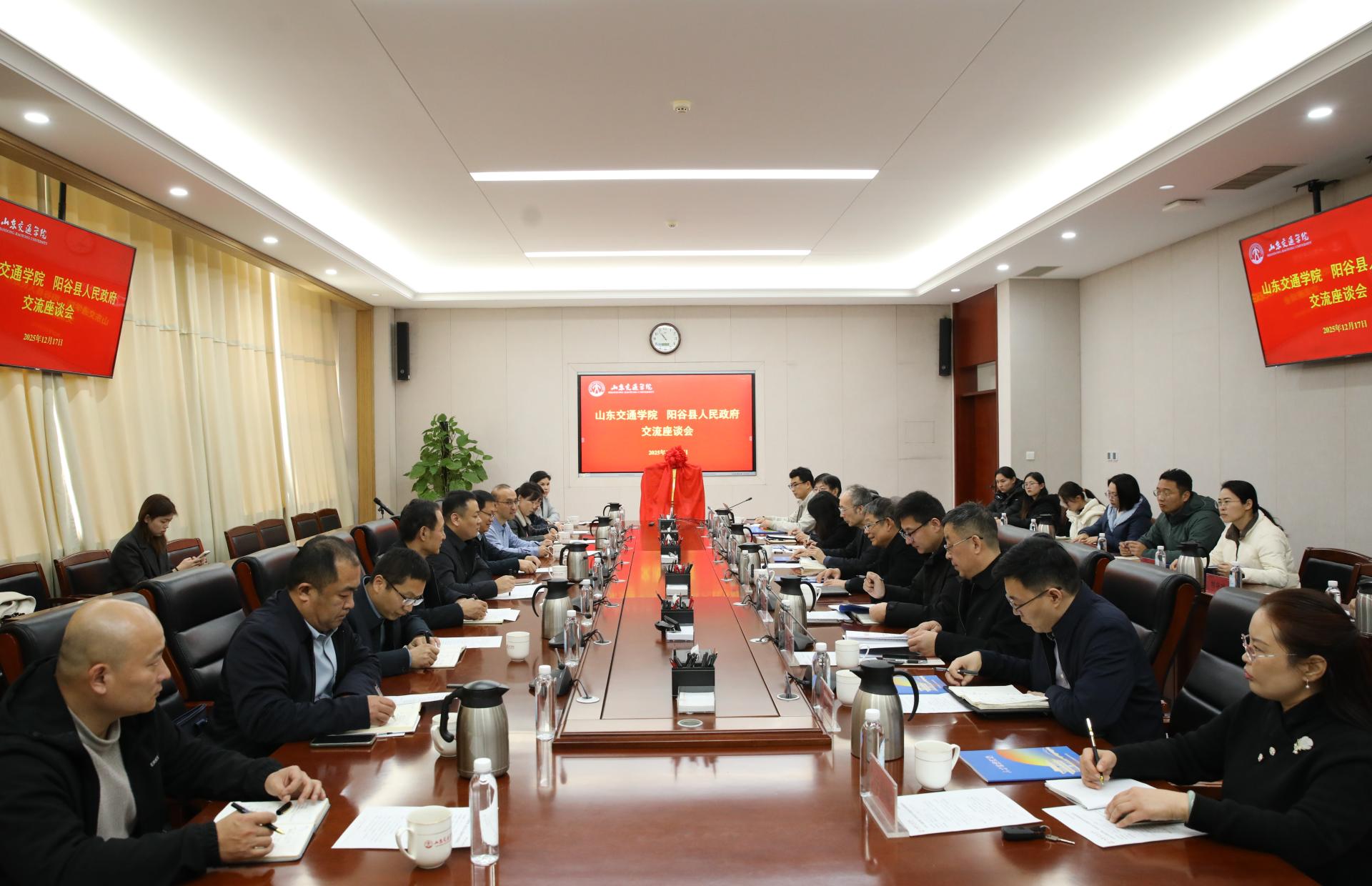 阳谷县人民政府部分负责同志、企业代表;学校学生工作处(人民武装部)、发展规划与学科建设处、人力资源处(教师工作部、人才工作办公室)、科研处、招生就业处、产教融合办公室、团委、交通与物流工程学院负责人,聊城阳谷籍教师、学生代表参加交流座谈会。