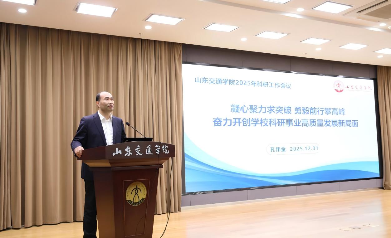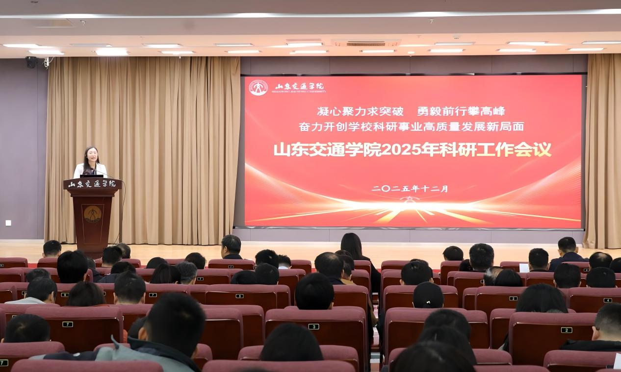 12月31日上午,学校在长清校区明德楼101报告厅召开2025年科研工作会议。省交通运输厅科技教育处处长张华,省教育厅科学技术处二级调研员矫立峰,长沙理工大学党委委员、副校长张军辉教授,学校党委领导班子成员王伟、孔伟金、李贞涛、王保群、李秀领、徐静、张萌萌、王兴盈出席。会议由党委委员、副院长张萌萌主持。