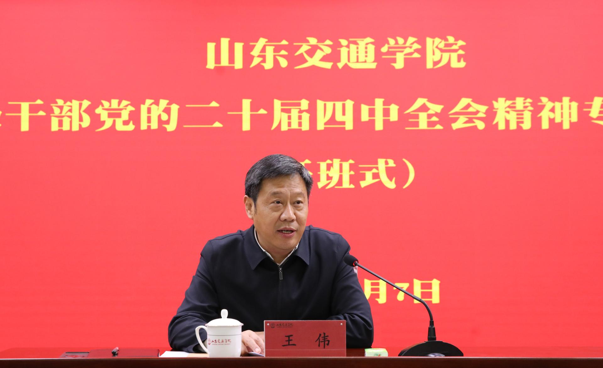 1月7日至9日,学校举办副处级干部党的二十届四中全会精神专题学习班。学校党委书记王伟出席开班式并作动员讲话,党委副书记李贞涛主持结业式并作总结讲话,党委委员、党委组织部部长王兴盈,党委委员、党委统战部部长刘庆波出席开班式。