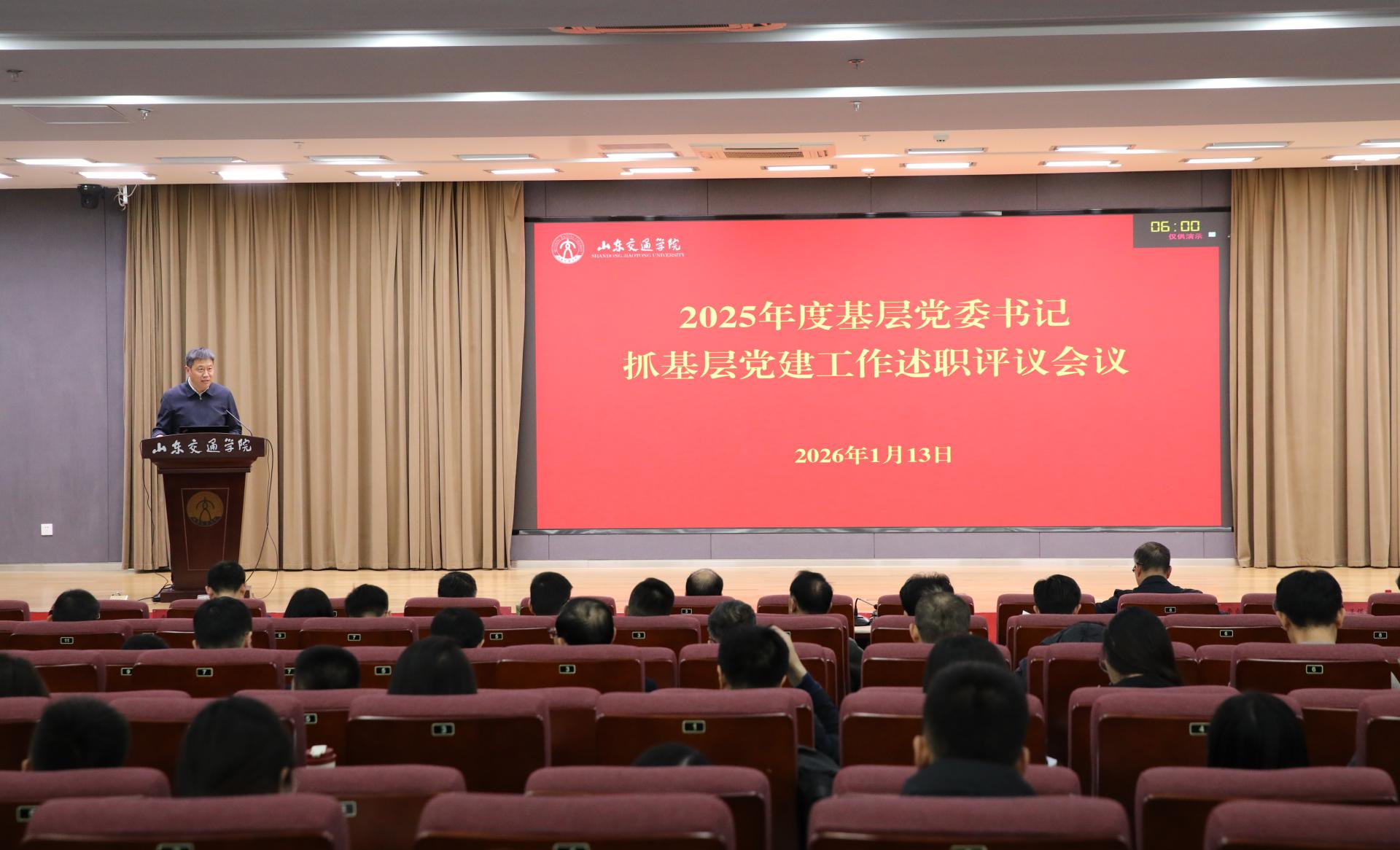 1月13日下午,学校在长清校区明德楼101报告厅召开2025年度基层党委书记抓基层党建工作述职评议会议。学校党委领导班子成员王伟、孔伟金、李贞涛、刘世杰、王保群、李秀领、徐静、张萌萌、王兴盈、刘庆波出席。党委书记王伟主持会议并作点评讲话。