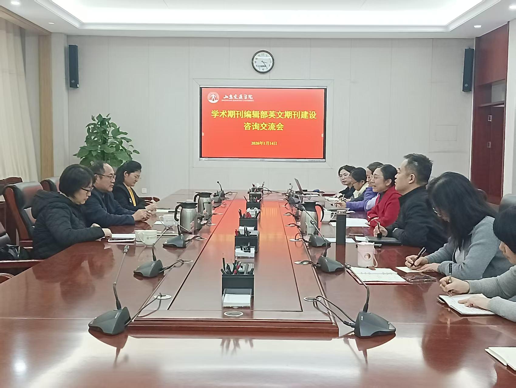 1月14日下午,学校在长清校区明德楼303会议室举办英文期刊建设咨询交流会,邀请山东大学图书期刊出版党委书记、科技期刊社社长、出版社社长陈斌,山东大学科技期刊社理学期刊中心主任许力琴传授办刊经验。学校党委委员、副院长张萌萌出席。会议由学术期刊编辑部主任郎伟锋主持。