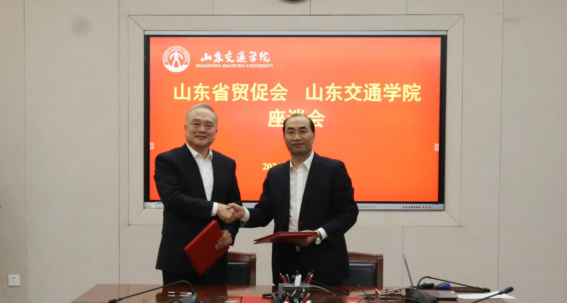 孔伟金对孟向东一行到访表示热烈欢迎,他从“交通立校”“学术兴校”“人才强校”“开放活校”“文化润校”五个方面介绍了学校发展历程、人才培养、学科建设、合作发展等基本情况。他指出,此次省贸促会来访,是对学校工作的关心与支持,更是双方深化合作、共谋发展的重要契机。他强调,此次签署战略合作协议,既是对双方既往友好合作的坚实延续,又是以契约形式锚定未来发展方向、开启深度协同的全新里程碑。希望双方以此为契机,在合作版图上做“加法”,在合作层次上做“乘法”,在行业应用型人才培养、高层次人才引进、“一带一路”联合实验室建设、配合山东企业走出去等方面开展全方位的务实合作,打造服务山东外向型经济高质量发展的新引擎。