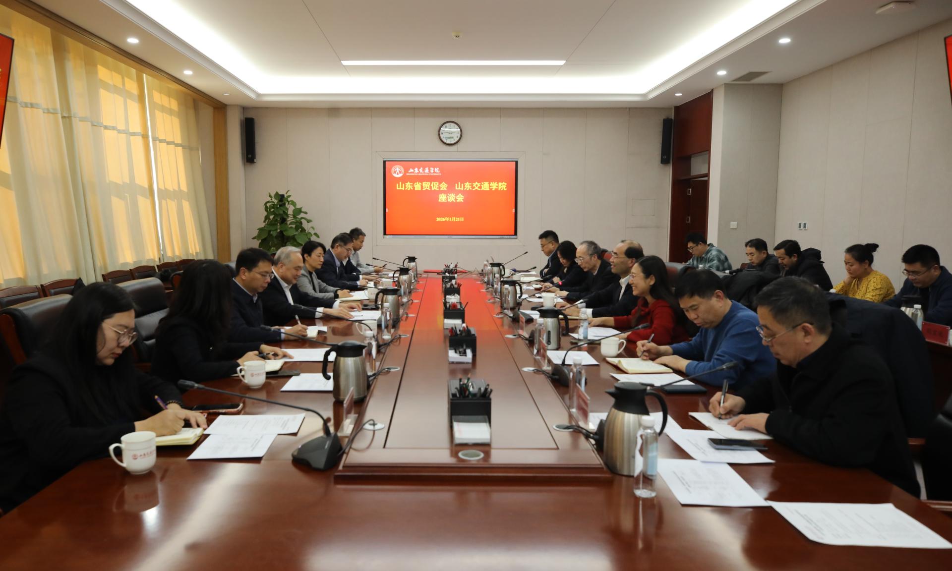 1月21日,中国国际贸易促进委员会山东省委员会党组书记、会长孟向东,党组成员、副会长魏凤等一行8人来我校座谈交流。学校党委副书记、院长孔伟金,党委委员、副院长张萌萌出席座谈会。会议由张萌萌主持。