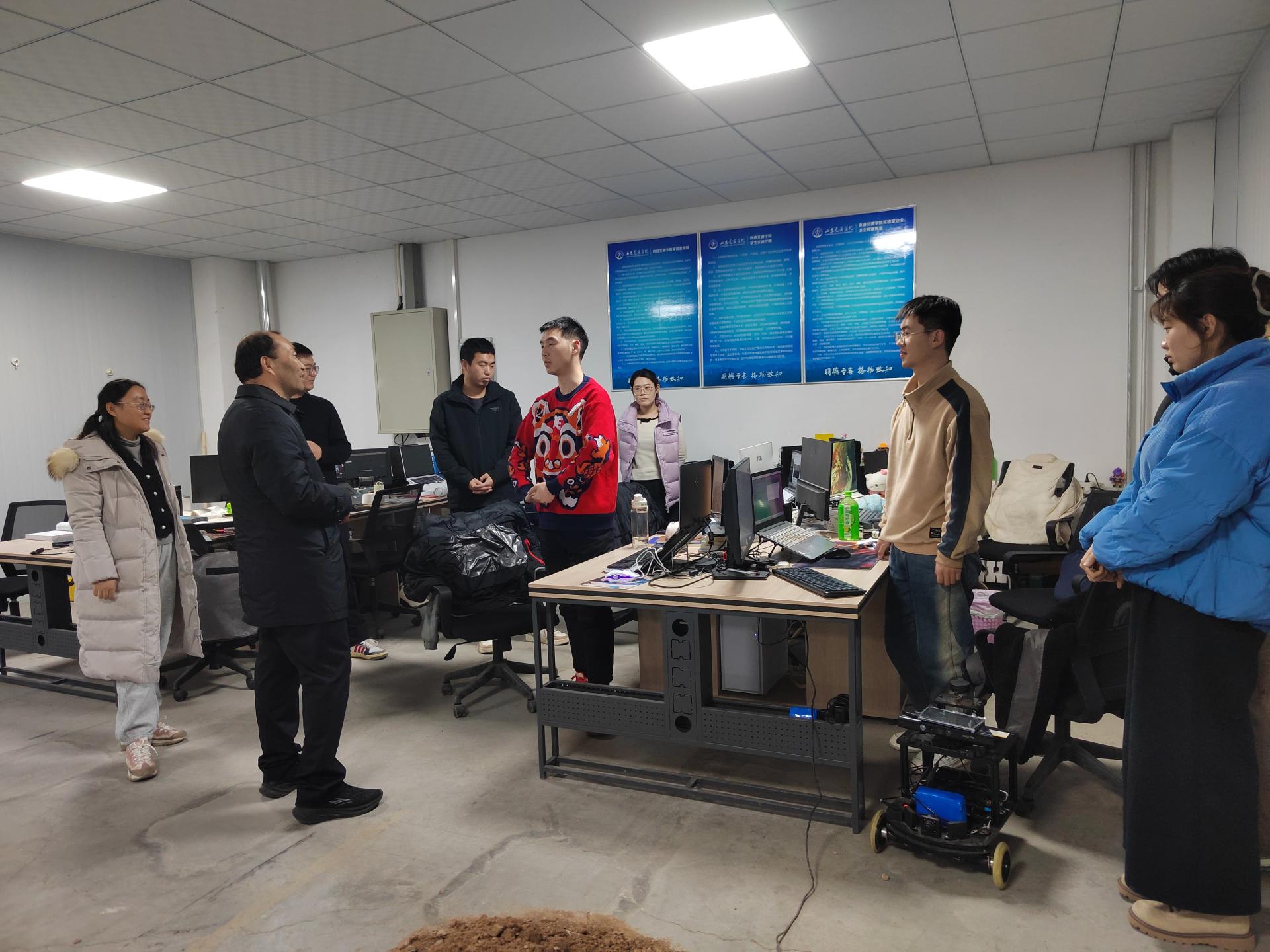 孔伟金先后走访汽车工程学院、工程机械学院、轨道交通学院等研究生工作室和科研实验室。每到一处,他都与留校教师和研究生亲切交流,深入了解研究生的思想动态、学业进展以及生活状况。在交流过程中,他勉励同学们在学术探索的道路上,始终保持勤于思考的习惯,善于对所学所研进行总结,产出高质量创新成果。他叮嘱同学们,刻苦钻研的同时要劳逸结合,注重身心健康,重视实验室安全和人身安全,学校将始终如一地关注研究生成长与发展,全力为同学们创造更好的学习和科研环境。