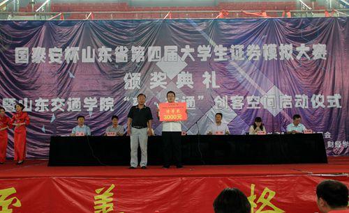 由省委宣传部、省委高校工委、团省委、省教育厅、省文化厅、省科协、省学联主办,我校承办的“国泰安杯”山东省第四届大学生证券模拟大赛近日圆满收盘。6月17日下午,大赛颁奖典礼暨山东交通学院“亮•交通”创客空间启动仪式在学校文体馆隆重举行。我校党委副书记、纪委书记唐勇,国泰安教育技术股份有限公司副总裁赵阳,济南创新谷管理委员会发展部部长齐瑞玲出席活动。山东师范大学、山东理工大学、山东科技大学、曲阜师范大学等10所高校的50余位获奖代表参加此次盛会。我校团委、财经学院相关负责人参加了活动。