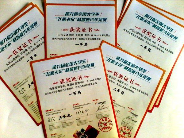 近日,第九届全国大学生“飞思卡尔”杯智能汽车山东赛区竞赛落幕,我校汽车工程学院学生王培金、郑培建、赵宗凯组成的“动感小麦兜”队获得了摄像头组一等奖,李志飞、路平、张青源组成的“北极光”队获得了电磁组三等奖,比赛过程中队员们沉着冷静、发挥稳定,展现了我校大学生良好的精神风貌,为学校赢得了荣誉。