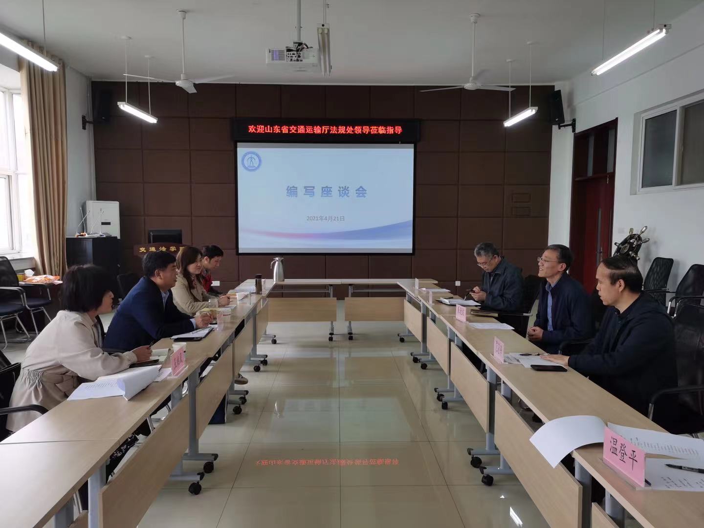4月21日上午,山东省交通运输厅法规处处长王爱兵、副处长宋明慧一行四人到我校长清校区调研,就推进与交通法学院合作项目在2号教学楼C406会议室举行座谈。学校党委委员、副院长来逢波会见来宾并参加座谈。座谈会由交通法学院院长主持。