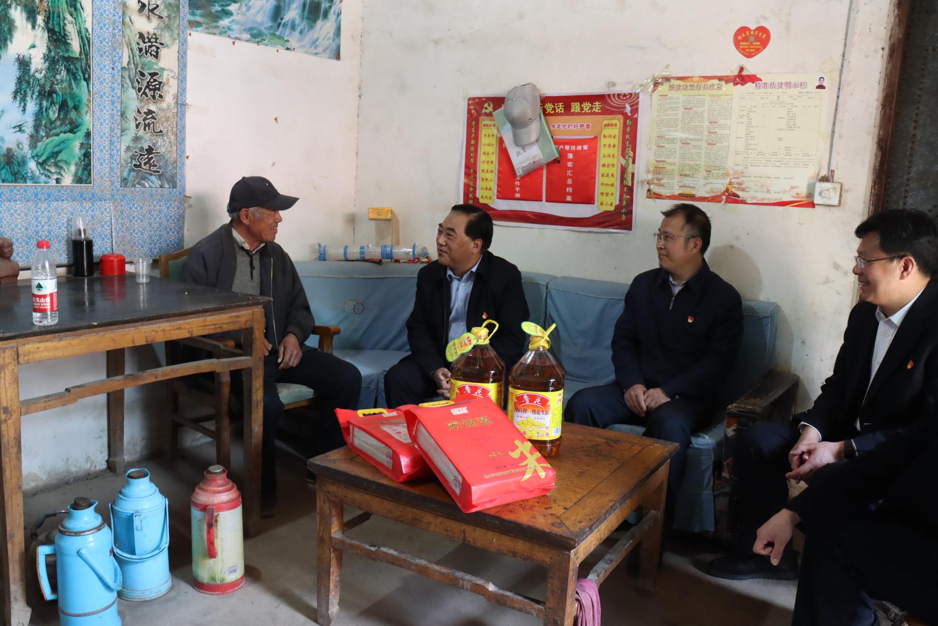 随后,王焕斌一行进行了实地走访,在“希望小屋”受助家庭,向他们赠送了书包和书籍等学习用品,鼓励他们克服困难、努力学习;在老党员、贫困户家中,与他们亲切交流,详细询问他们的生活和身体情况,并嘱咐他们保重身体,一定要相信党的精准脱贫、乡村振兴政策会让他们生活越来越好,鼓励他们树立脱贫致富和乡村振兴的信心。