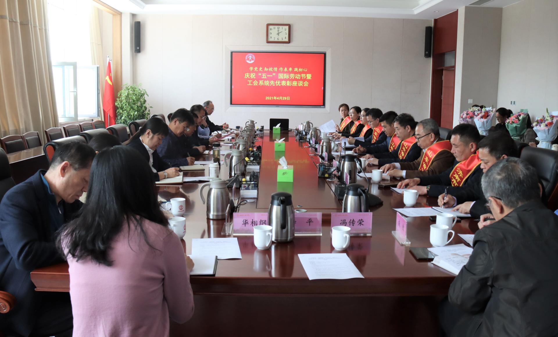 学校历届获得省五一劳动奖状、省市五一劳动奖章、省工人先锋号和省教育系统女职工建功立业岗、标兵的教师代表,相关职能部门主要负责人,相关二级学院、资产经营公司分工会主席,青年教师代表参加了座谈会。