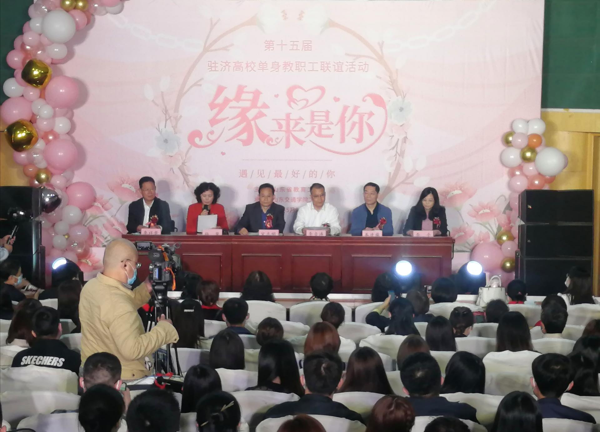 5月9日,由山东省教育工会主办、我校承办的第十五届“缘来是你”驻济高校单身教职工联谊活动在我校无影山校区图书馆报告厅成功举办。山东省教育工会主席宋志明出席开幕式并讲话,我校党委副书记李贞涛致欢迎辞。开幕式由山东省教育工会副主席杨慧主持。